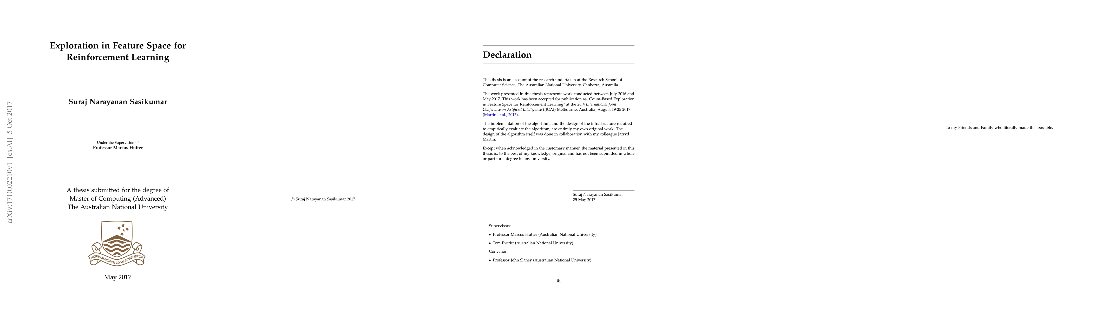 A new exploration algorithm for reinforcement learning is introduced, which rewards agents for exploring in feature space rather than state space, achieving near-state-of-the-art results on challenging Atari games.