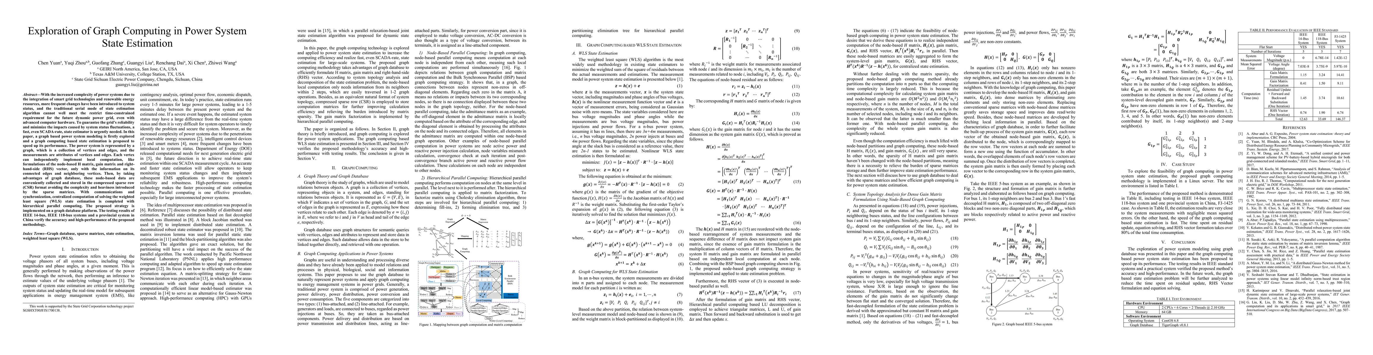 This paper proposes a graph computing-based state estimation method to enhance the speed and efficiency of power system state estimation, addressing the challenges posed by smart grid technologies and renewable energy integration. The method leverages graph databases and hierarchical parallel computing to achieve fast, even SCADA-rate, state estimation, validated through testing on various power systems.