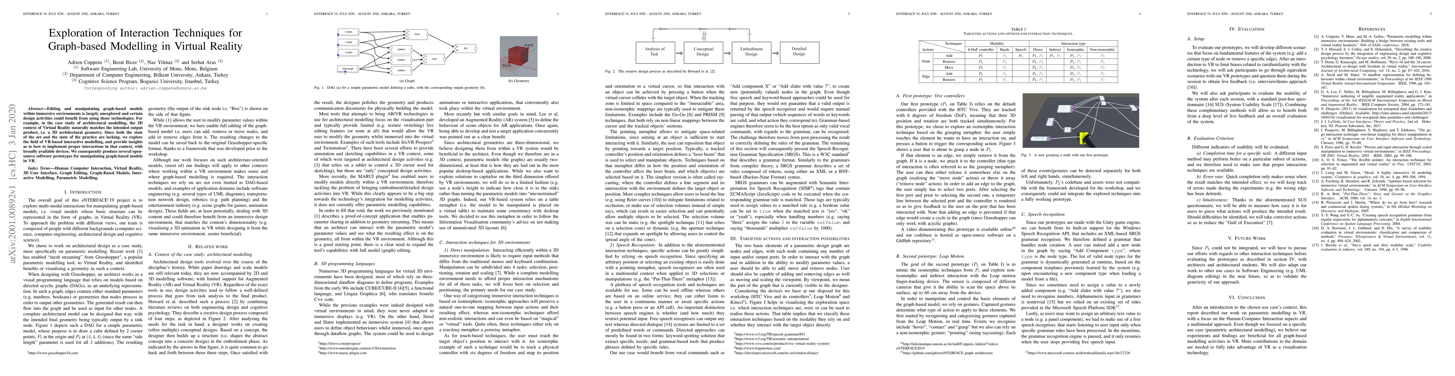 Editing and manipulating graph-based models within immersive environments is largely unexplored and certain design activities could benefit from using those technologies. For example, in the case study of architectural modelling, the 3D context of Virtual Reality naturally matches the intended output product, i.e. a 3D architectural geometry. Since both the state of the art and the state of the practice are lacking, we explore the field of VR-based interactive modelling, and provide insights as to how to implement proper interactions in that context, with broadly available devices. We consequently produce several open-source software prototypes for manipulating graph-based models in VR.