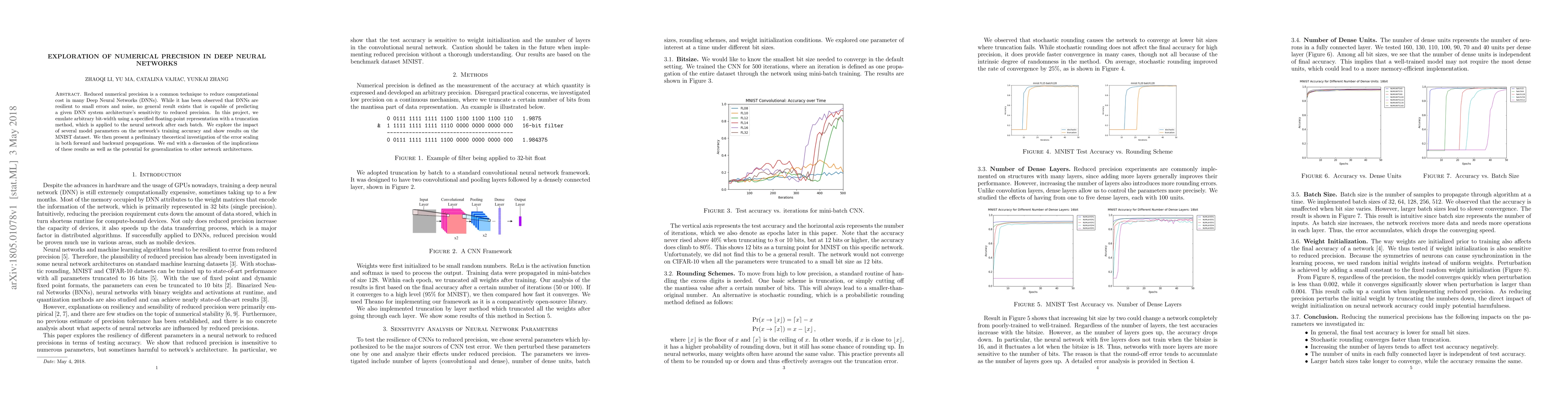 Reduced numerical precision is a common technique to reduce computational cost in many Deep Neural Networks (DNNs). While it has been observed that DNNs are resilient to small errors and noise, no general result exists that is capable of predicting a given DNN system architecture's sensitivity to reduced precision. In this project, we emulate arbitrary bit-width using a specified floating-point representation with a truncation method, which is applied to the neural network after each batch. We explore the impact of several model parameters on the network's training accuracy and show results on the MNIST dataset. We then present a preliminary theoretical investigation of the error scaling in both forward and backward propagations. We end with a discussion of the implications of these results as well as the potential for generalization to other network architectures.