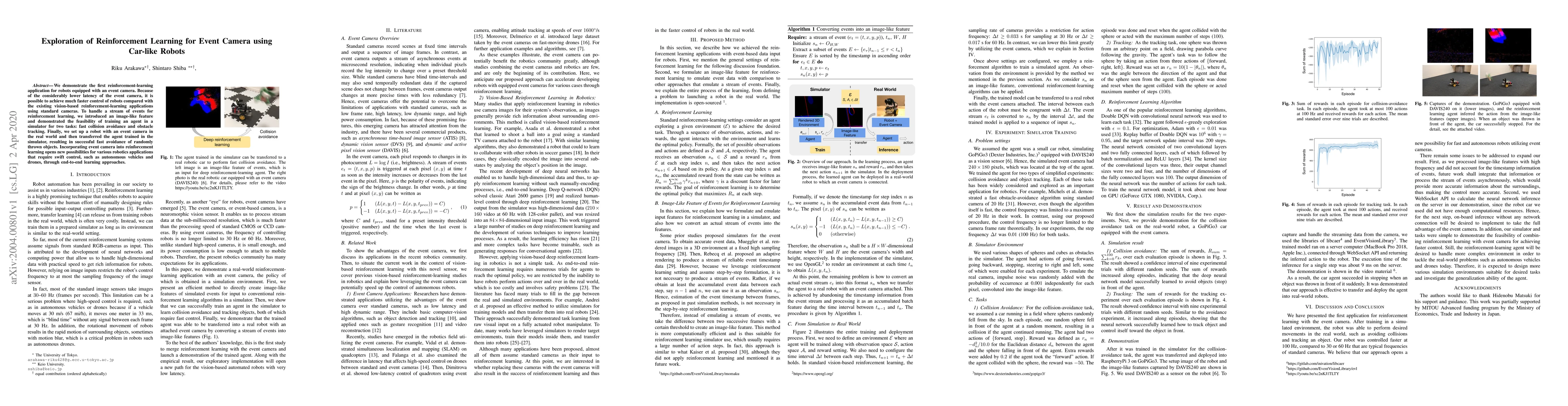 This paper explores reinforcement learning for robots using event cameras, achieving faster control due to lower latency. It demonstrates training an agent in a simulator for collision avoidance and obstacle tracking, and successfully transfers the trained agent to a real-world robot for fast object avoidance.