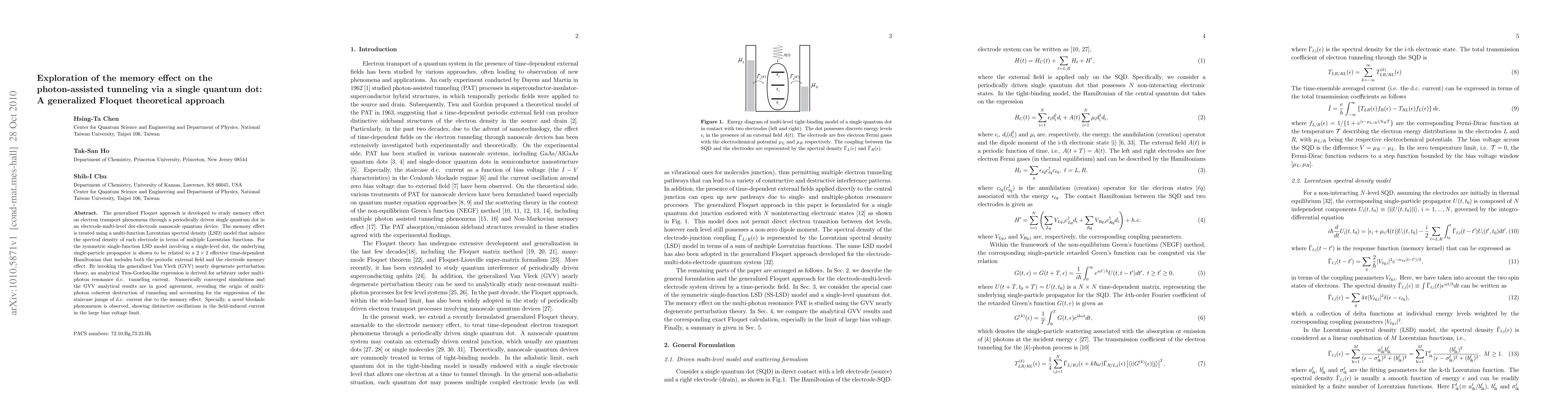 The generalized Floquet approach is developed to study memory effect on electron transport phenomena through a periodically driven single quantum dot in an electrode-multi-level dot-electrode nanoscale quantum device. The memory effect is treated using a multi-function Lorentzian spectral density (LSD) model that mimics the spectral density of each electrode in terms of multiple Lorentzian functions. For the symmetric single-function LSD model involving a single-level dot, the underlying single-particle propagator is shown to be related to a 2 x 2 effective time-dependent Hamiltonian that includes both the periodic external field and the electrode memory effect. By invoking the generalized Van Vleck (GVV) nearly degenerate perturbation theory, an analytical Tien-Gordon-like expression is derived for arbitrary order multi- photon resonance d.c. tunneling current. Numerically converged simulations and the GVV analytical results are in good agreement, revealing the origin of multi- photon coherent destruction of tunneling and accounting for the suppression of the staircase jumps of d.c. current due to the memory effect. Specially, a novel blockade phenomenon is observed, showing distinctive oscillations in the field-induced current in the large bias voltage limit.