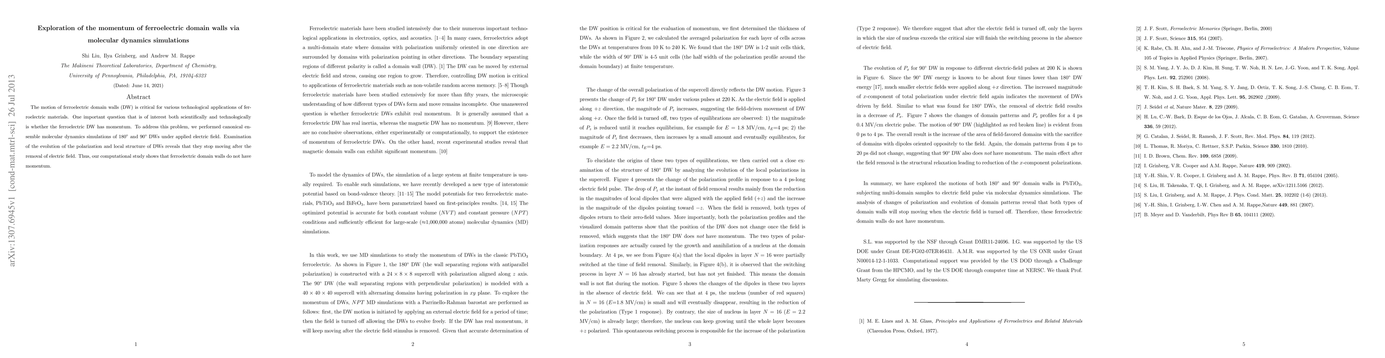 This study uses molecular dynamics simulations to investigate whether ferroelectric domain walls possess momentum. Results indicate that after the removal of an applied electric field, domain walls cease to move, suggesting they do not have momentum.