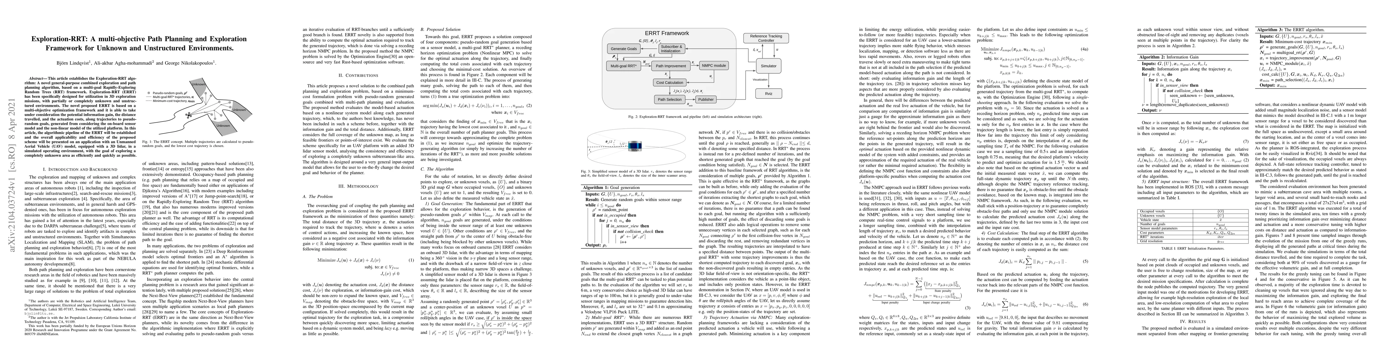 This article establishes the Exploration-RRT algorithm: A novel general-purpose combined exploration and pathplanning algorithm, based on a multi-goal Rapidly-Exploring Random Trees (RRT) framework. Exploration-RRT (ERRT) has been specifically designed for utilization in 3D exploration missions, with partially or completely unknown and unstructured environments. The novel proposed ERRT is based on a multi-objective optimization framework and it is able to take under consideration the potential information gain, the distance travelled, and the actuation costs, along trajectories to pseudo-random goals, generated from considering the on-board sensor model and the non-linear model of the utilized platform. In this article, the algorithmic pipeline of the ERRT will be established and the overall applicability and efficiency of the proposed scheme will be presented on an application with an Unmanned Aerial Vehicle (UAV) model, equipped with a 3D lidar, in a simulated operating environment, with the goal of exploring a completely unknown area as efficiently and quickly as possible