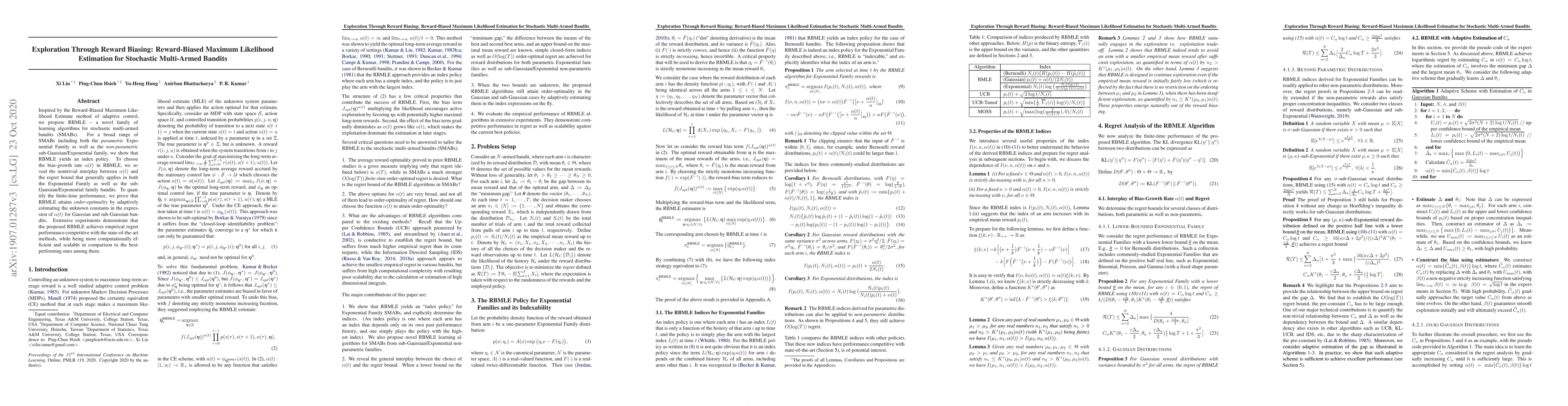 This paper introduces RBMLE, a novel family of learning algorithms for stochastic multi-armed bandits, achieving order-optimality and competitive empirical regret performance. It demonstrates the interplay between bias-growth rate and regret bounds, showing computational efficiency and scalability.