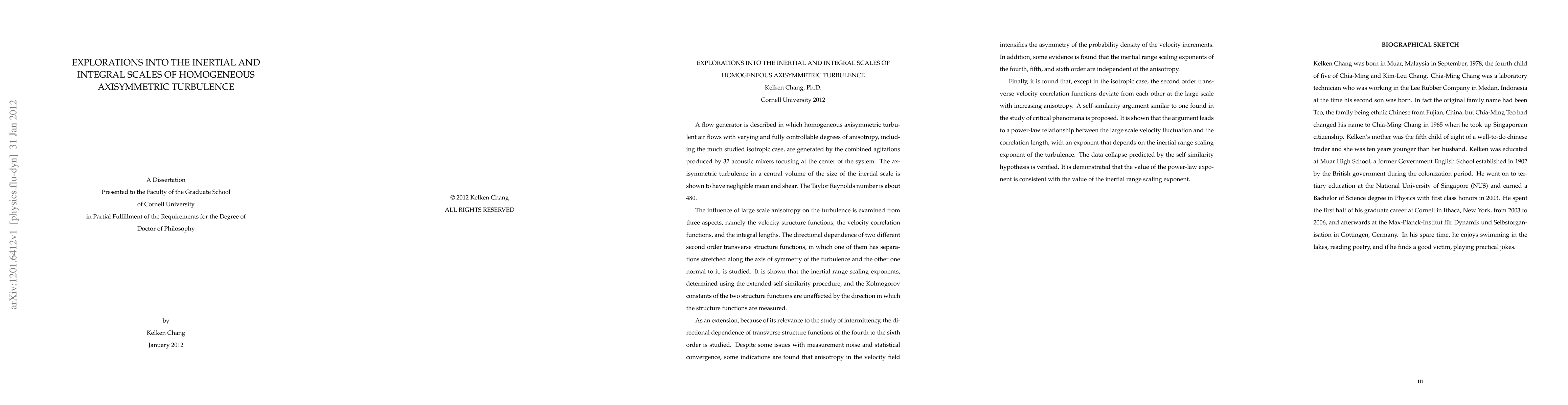 This paper explores the inertial and integral scales of homogeneous axisymmetric turbulence generated by acoustic mixers, finding that anisotropy affects large-scale velocity correlations but not the inertial range scaling exponents. A self-similarity argument is proposed for the relationship between large scale velocity fluctuations and correlation length.