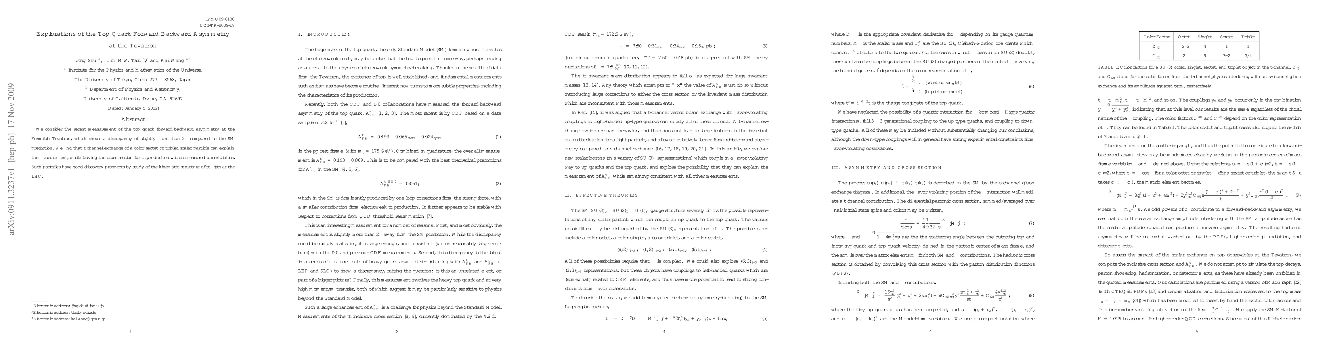 This paper explores a 2$\sigma$ discrepancy in the top quark forward-backward asymmetry at the Tevatron compared to Standard Model predictions, suggesting that a color sextet or triplet scalar particle in $t$-channel exchange could explain the anomaly without affecting $t \bar{t}$ production cross sections. The study highlights potential LHC analyses of $t \bar{t}$+jets for discovering such particles.