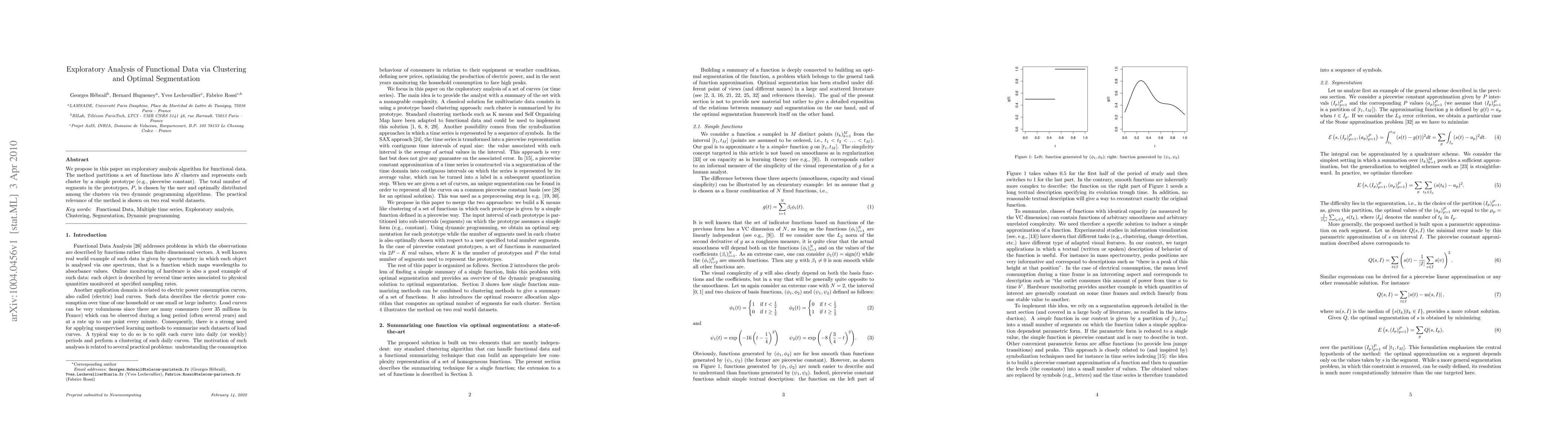 We propose in this paper an exploratory analysis algorithm for functional data. The method partitions a set of functions into $K$ clusters and represents each cluster by a simple prototype (e.g., piecewise constant). The total number of segments in the prototypes, $P$, is chosen by the user and optimally distributed among the clusters via two dynamic programming algorithms. The practical relevance of the method is shown on two real world datasets.