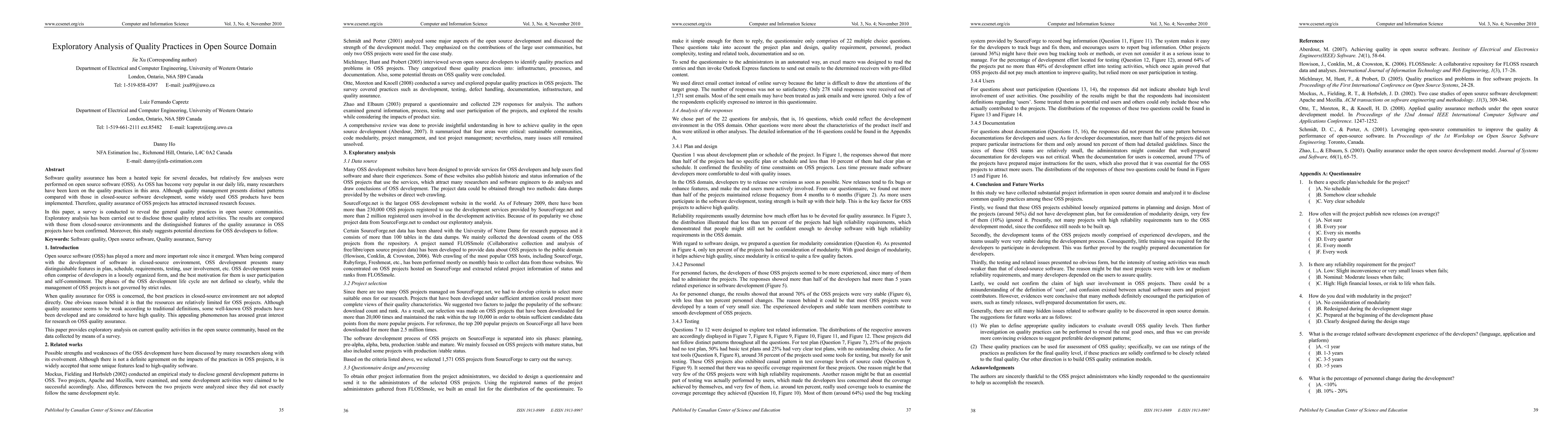 This paper conducts an exploratory analysis of quality practices in open source software (OSS) to reveal general quality assurance activities in open source communities. The study compares these practices with those in closed-source environments, confirming distinct patterns in OSS quality management and suggesting potential directions for OSS developers.