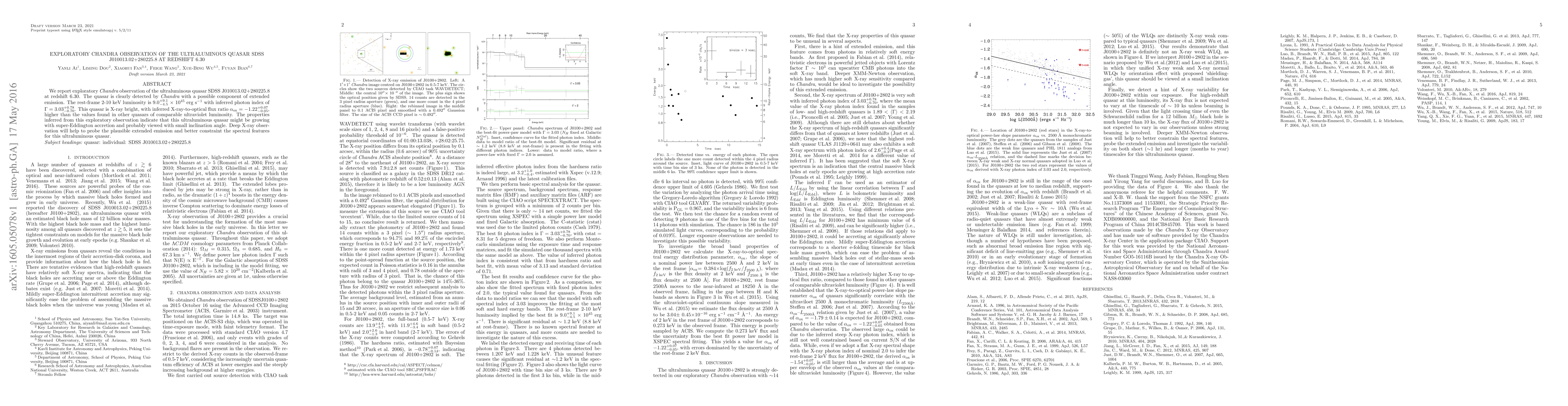 The Chandra observation of ultraluminous quasar SDSS J010013.02+280225.8 reveals a high X-ray-to-optical flux ratio, suggesting super-Eddington accretion and small inclination angle, with rest-frame luminosity 9x10^45 erg s^-1.