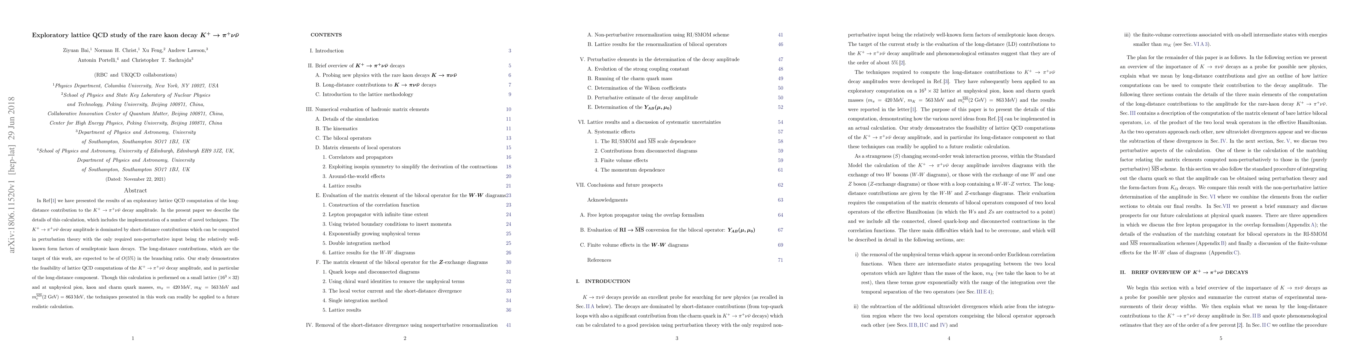 This paper details an exploratory lattice QCD study of the rare kaon decay $K^+\to\pi^+\nu\bar{\nu}$, focusing on long-distance contributions. The study demonstrates the feasibility of such computations using novel techniques on a small lattice and unphysical quark masses.