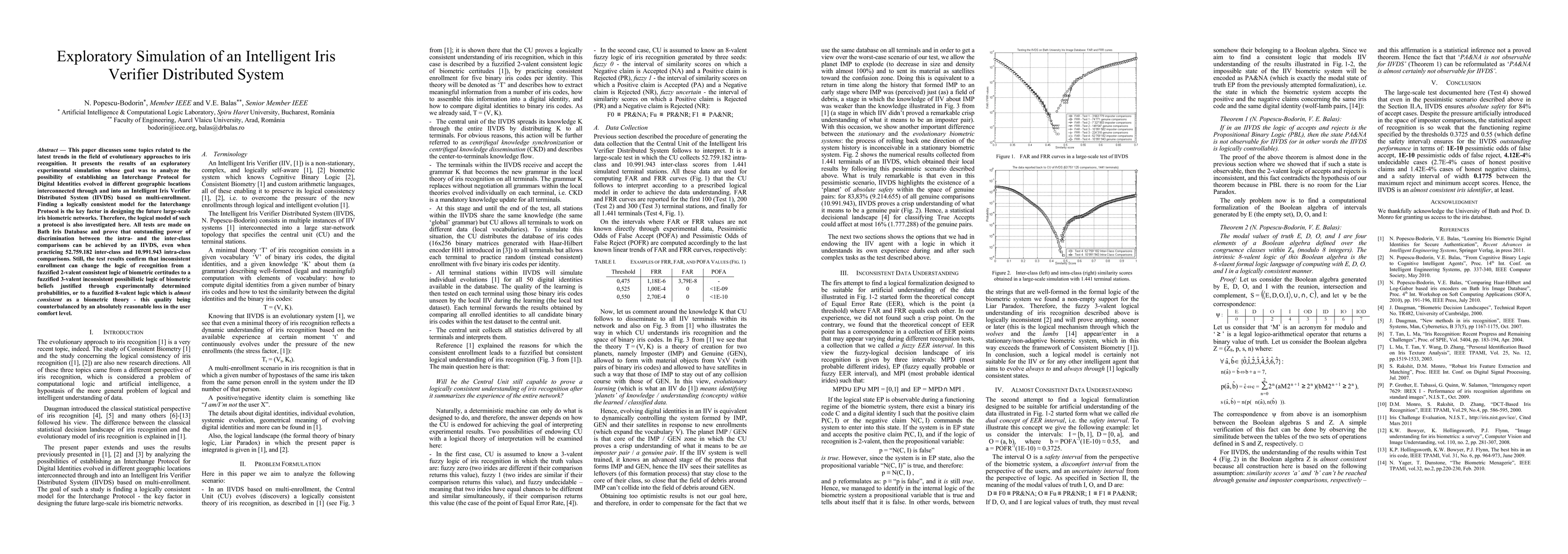 This paper discusses some topics related to the latest trends in the field of evolutionary approaches to iris recognition. It presents the results of an exploratory experimental simulation whose goal was to analyze the possibility of establishing an Interchange Protocol for Digital Identities evolved in different geographic locations interconnected through and into an Intelligent Iris Verifier Distributed System (IIVDS) based on multi-enrollment. Finding a logically consistent model for the Interchange Protocol is the key factor in designing the future large-scale iris biometric networks. Therefore, the logical model of such a protocol is also investigated here. All tests are made on Bath Iris Database and prove that outstanding power of discrimination between the intra- and the inter-class comparisons can be achieved by an IIVDS, even when practicing 52.759.182 inter-class and 10.991.943 intra-class comparisons. Still, the test results confirm that inconsistent enrollment can change the logic of recognition from a fuzzified 2-valent consistent logic of biometric certitudes to a fuzzified 3-valent inconsistent possibilistic logic of biometric beliefs justified through experimentally determined probabilities, or to a fuzzified 8-valent logic which is almost consistent as a biometric theory - this quality being counterbalanced by an absolutely reasonable loss in the user comfort level.