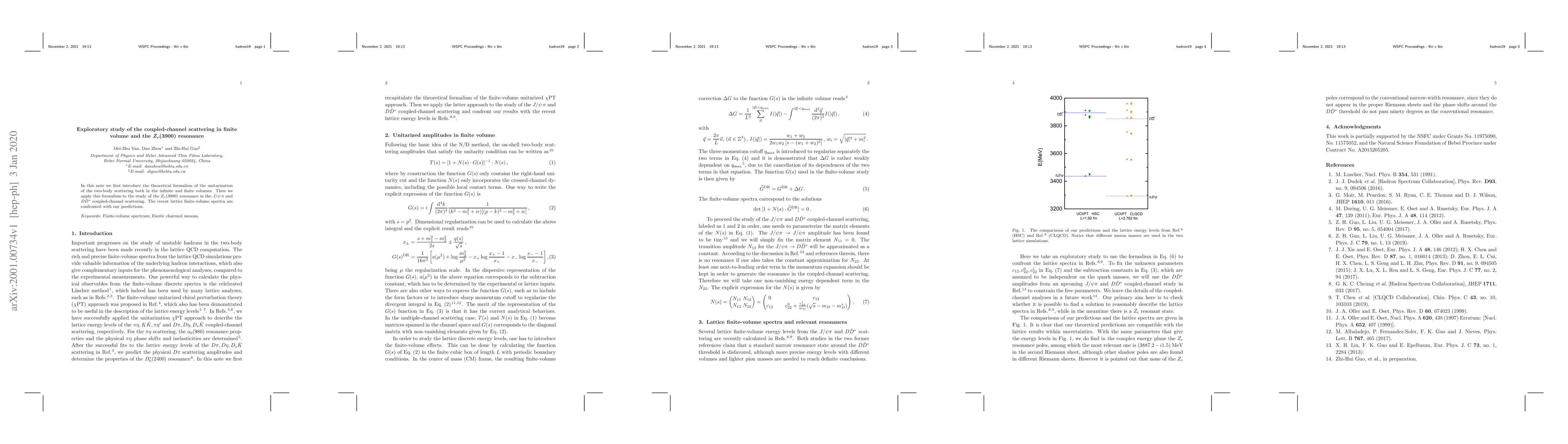 In this note we first introduce the theoretical formalism of the unitarization of the two-body scattering both in the infinite and finite volumes. Then we apply this formalism to the study of the $Z_c(3900)$ resonance in the $J/\psi\,\pi$ and $D\bar{D}^{*}$ coupled-channel scattering. The recent lattice finite-volume spectra are confronted with our predictions.