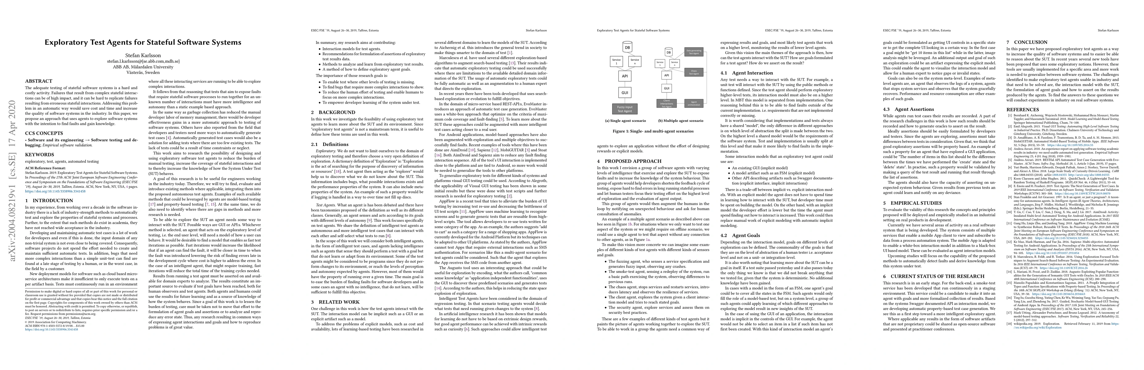 The adequate testing of stateful software systems is a hard and costly activity. Failures that result from complex stateful interactions can be of high impact, and it can be hard to replicate failures resulting from erroneous stateful interactions. Addressing this problem in an automatic way would save cost and time and increase the quality of software systems in the industry. In this paper, we propose an approach that uses agents to explore software systems with the intention to find faults and gain knowledge.