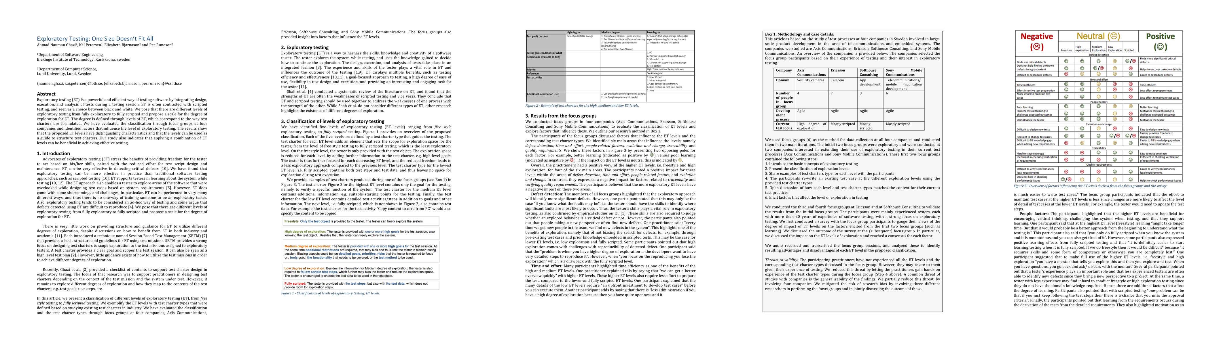 Research explores different levels of exploratory testing, proposing a scale to structure test charters and highlighting the benefits of combining levels for effective testing.