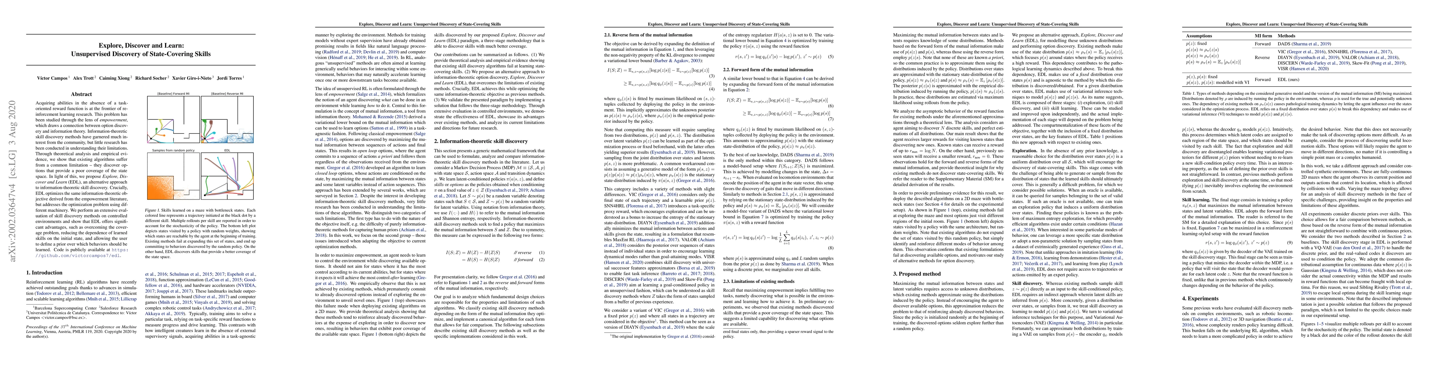 Researchers developed an alternative approach to information-theoretic skill discovery, called EDL, which overcomes limitations of existing algorithms in discovering state-covering skills and offers significant advantages in controlling the learning process.