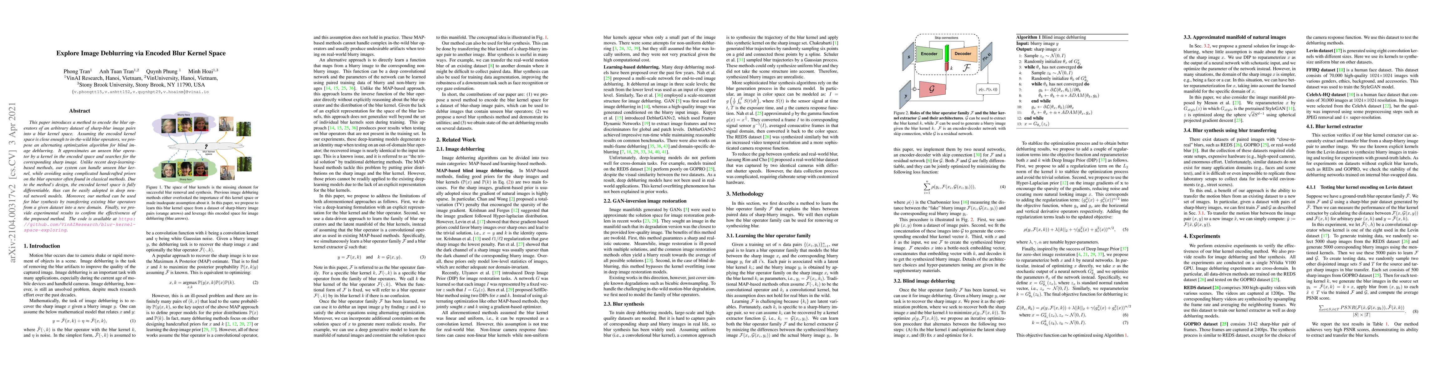 This paper proposes a method to encode blur kernels from sharp-blur image pairs into a kernel space for blind image deblurring, enabling handling of unseen blur kernels without handcrafted priors. The approach is differentiable and can be integrated into deep neural networks, also allowing for blur synthesis.