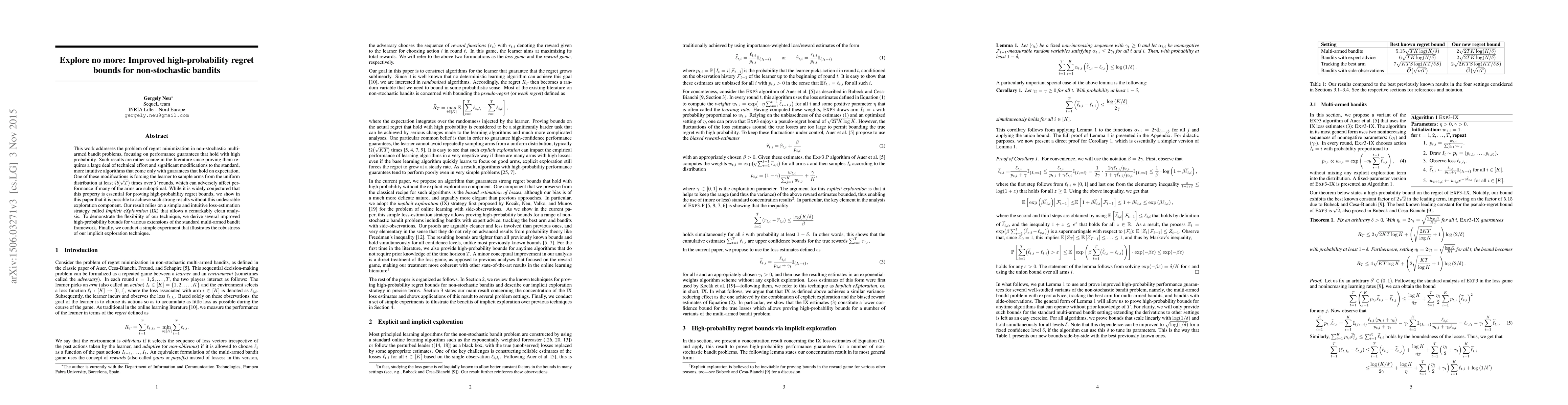 Researchers developed a novel approach to improve regret bounds in non-stochastic multi-armed bandits without requiring excessive exploration, offering stronger performance guarantees with high probability.