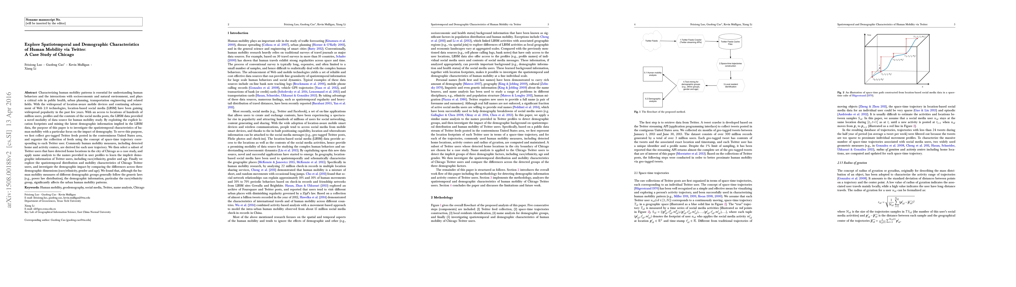 This paper investigates the spatiotemporal and demographic characteristics of human mobility in Chicago using geo-tagged Twitter data, revealing that while general mobility patterns follow generic laws, demographic factors like race/ethnicity significantly influence urban mobility behaviors.