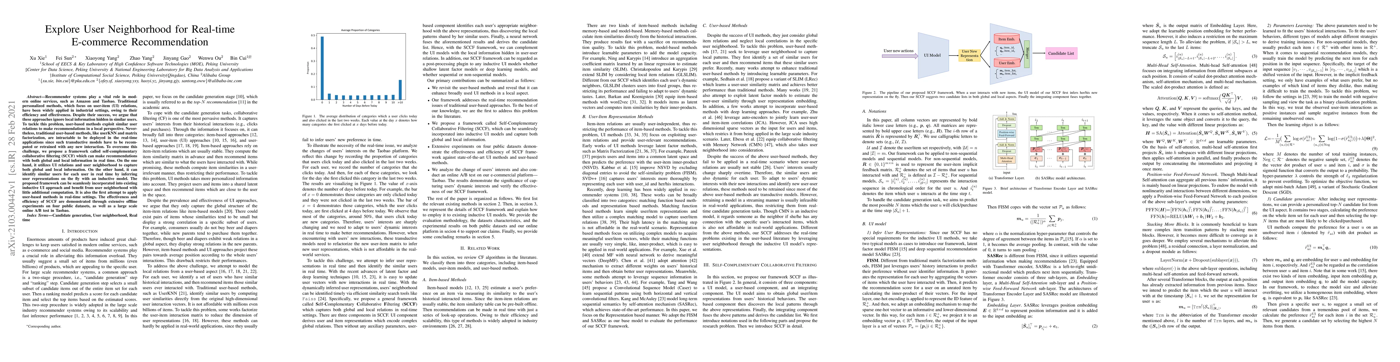 The paper proposes a real-time recommendation framework, self-complementary collaborative filtering (SCCF), that leverages both global user-item relations and local user neighborhood information. SCCF efficiently identifies similar users in real-time using an inductive model, offering improvements over traditional user-based methods that are computationally expensive for real-time applications. The effectiveness of SCCF is validated through extensive experiments on public datasets and a large-scale online A/B test on Taobao.