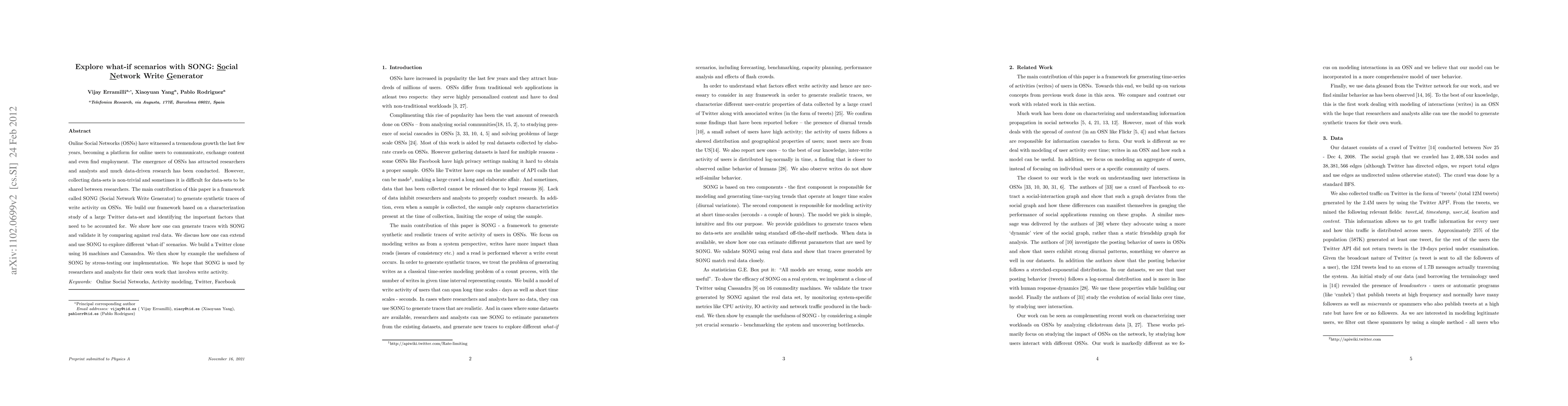 Online Social Networks (OSNs) have witnessed a tremendous growth the last few years, becoming a platform for online users to communicate, exchange content and even find employment. The emergence of OSNs has attracted researchers and analysts and much data-driven research has been conducted. However, collecting data-sets is non-trivial and sometimes it is difficult for data-sets to be shared between researchers. The main contribution of this paper is a framework called SONG (Social Network Write Generator) to generate synthetic traces of write activity on OSNs. We build our framework based on a characterization study of a large Twitter data-set and identifying the important factors that need to be accounted for. We show how one can generate traces with SONG and validate it by comparing against real data. We discuss how one can extend and use SONG to explore different `what-if' scenarios. We build a Twitter clone using 16 machines and Cassandra. We then show by example the usefulness of SONG by stress-testing our implementation. We hope that SONG is used by researchers and analysts for their own work that involves write activity.
