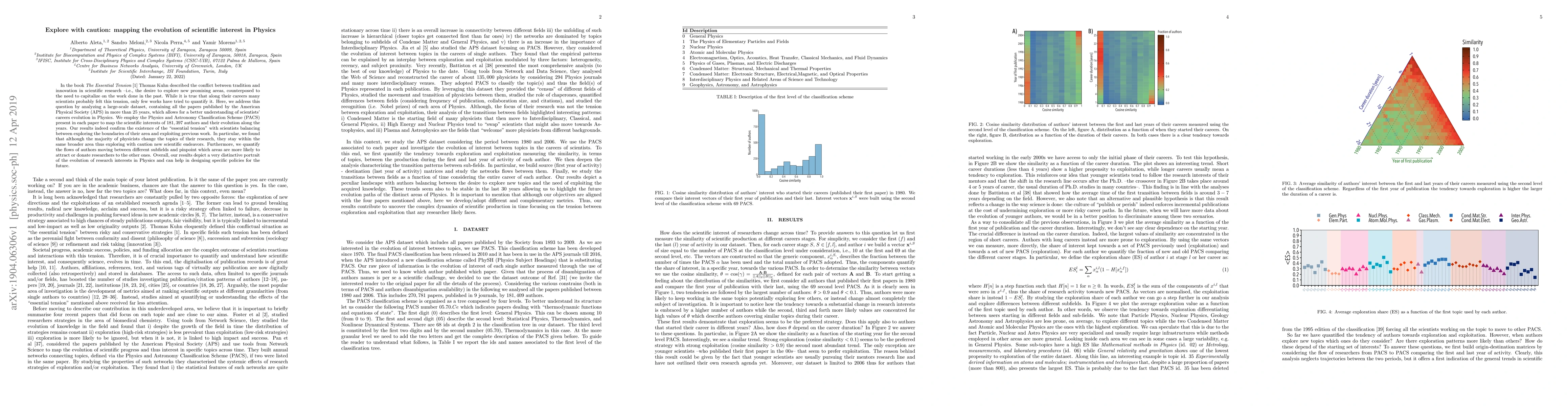 In the book The Essential Tension Thomas Kuhn described the conflict between tradition and innovation in scientific research --i.e., the desire to explore new promising areas, counterposed to the need to capitalize on the work done in the past. While it is true that along their careers many scientists probably felt this tension, only few works have tried to quantify it. Here, we address this question by analyzing a large-scale dataset, containing all the papers published by the American Physical Society (APS) in more than $25$ years, which allows for a better understanding of scientists' careers evolution in Physics. We employ the Physics and Astronomy Classification Scheme (PACS) present in each paper to map the scientific interests of $181,397$ authors and their evolution along the years. Our results indeed confirm the existence of the `essential tension' with scientists balancing between exploring the boundaries of their area and exploiting previous work. In particular, we found that although the majority of physicists change the topics of their research, they stay within the same broader area thus exploring with caution new scientific endeavors. Furthermore, we quantify the flows of authors moving between different subfields and pinpoint which areas are more likely to attract or donate researchers to the other ones. Overall, our results depict a very distinctive portrait of the evolution of research interests in Physics and can help in designing specific policies for the future.