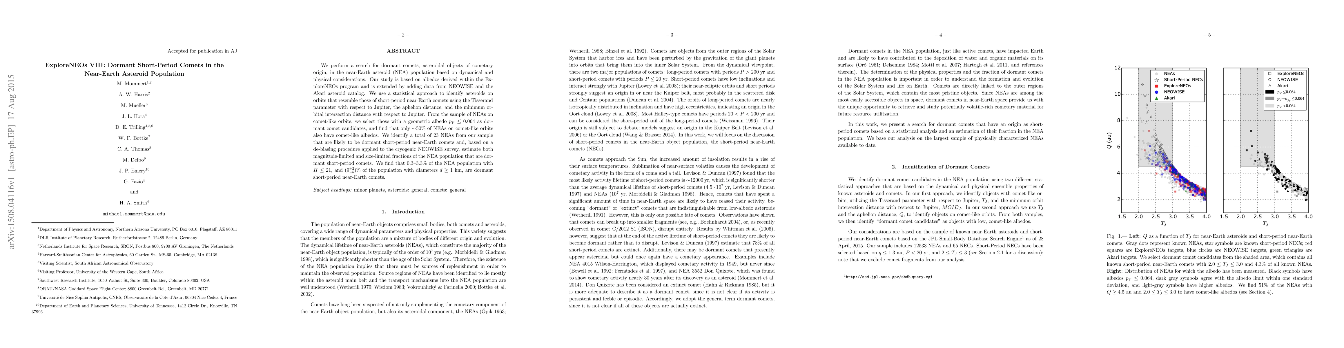 This study identifies dormant comets within the near-Earth asteroid population using dynamical and physical criteria, finding that 0.3-3.3% of smaller NEAs and 9% of larger NEAs with diameters ≥1 km are likely dormant short-period comets. The research combines data from the ExploreNEOs program, NEOWISE, and the Akari asteroid catalog.