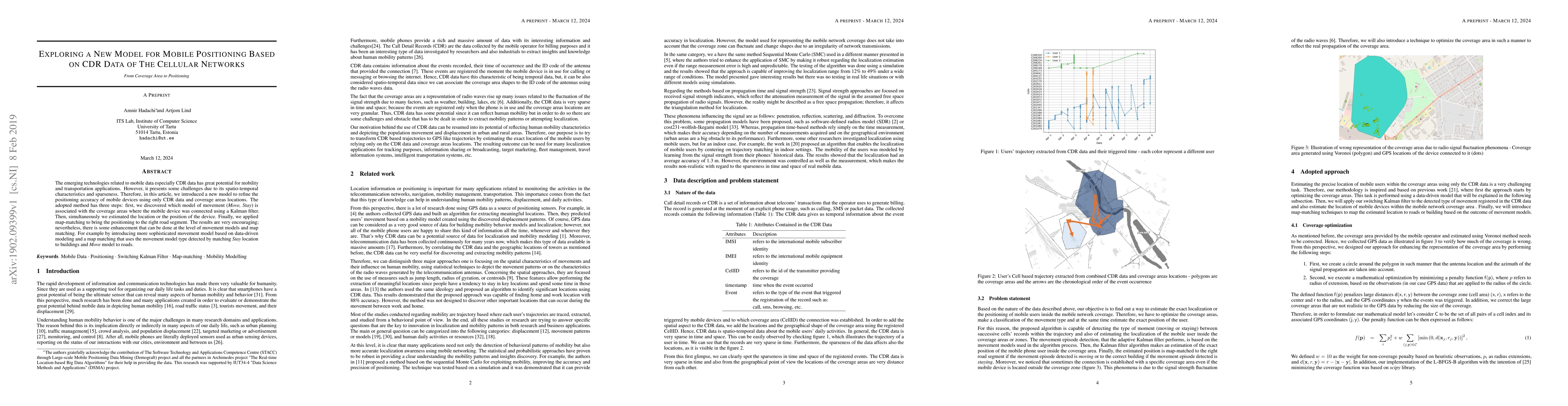 The emerging technologies related to mobile data especially CDR data has great potential for mobility and transportation applications. However, it presents some challenges due to its spatio-temporal characteristics and sparseness. Therefore, in this article, we introduced a new model to refine the positioning accuracy of mobile devices using only CDR data and coverage areas locations. The adopted method has three steps: first, we discovered which model of movement (Move, Stay) is associated with the coverage areas where the mobile device was connected using a Kalman filter. Then, simultaneously we estimated the location or the position of the device. Finally, we applied map-matching to bring the positioning to the right road segment. The results are very encouraging; nevertheless, there is some enhancement that can be done at the level of movement models and map matching. For example by introducing more sophisticated movement model based on data-driven modeling and a map matching that uses the movement model type detected by matching "Stay" location to buildings and "Move" model to roads.