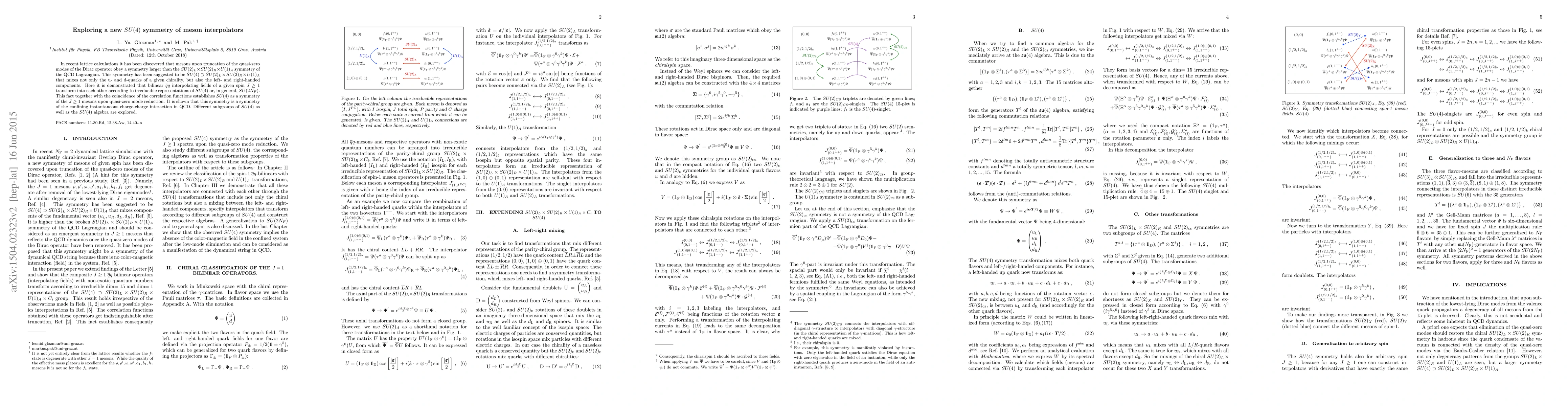 In recent lattice calculations it has been discovered that mesons upon truncation of the quasi-zero modes of the Dirac operator obey a symmetry larger than the $SU(2)_L \times SU(2)_R\times U(1)_A$ symmetry of the QCD Lagrangian. This symmetry has been suggested to be $SU(4) \supset SU(2)_L \times SU(2)_R\times U(1)_A$ that mixes not only the u- and d-quarks of a given chirality, but also the left- and right-handed components. Here it is demonstrated that bilinear $\overline{q}q$ interpolating fields of a given spin $J \geq 1$ transform into each other according to irreducible representations of $SU(4)$ or, in general, $SU(2N_F)$. This fact together with the coincidence of the correlation functions establishes $SU(4)$ as a symmetry of the $J \geq 1$ mesons upon quasi-zero mode reduction. It is shown that this symmetry is a symmetry of the confining instantaneous charge-charge interaction in QCD. Different subgroups of $SU(4)$ as well as the $SU(4)$ algebra are explored.
