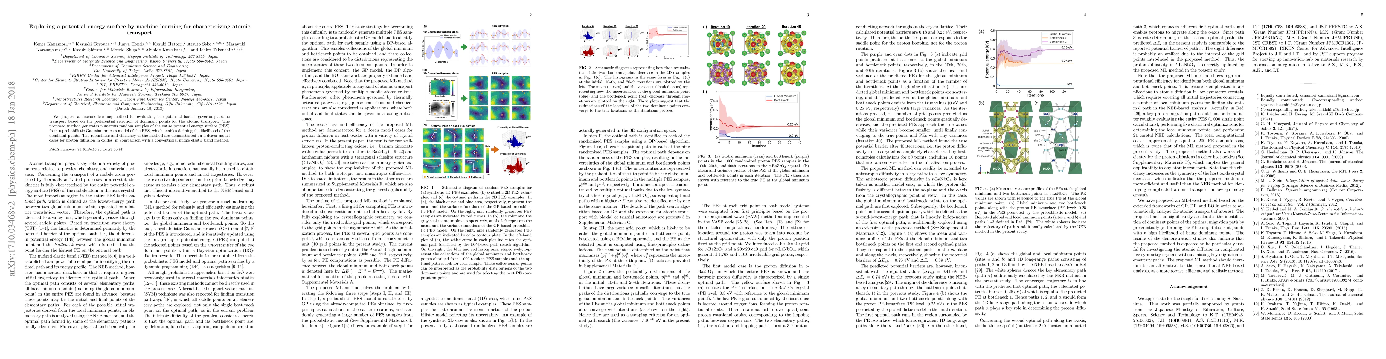 We propose a machine-learning method for evaluating the potential barrier governing atomic transport based on the preferential selection of dominant points for the atomic transport. The proposed method generates numerous random samples of the entire potential energy surface (PES) from a probabilistic Gaussian process model of the PES, which enables defining the likelihood of the dominant points. The robustness and efficiency of the method are demonstrated on a dozen model cases for proton diffusion in oxides, in comparison with a conventional nudge elastic band method.
