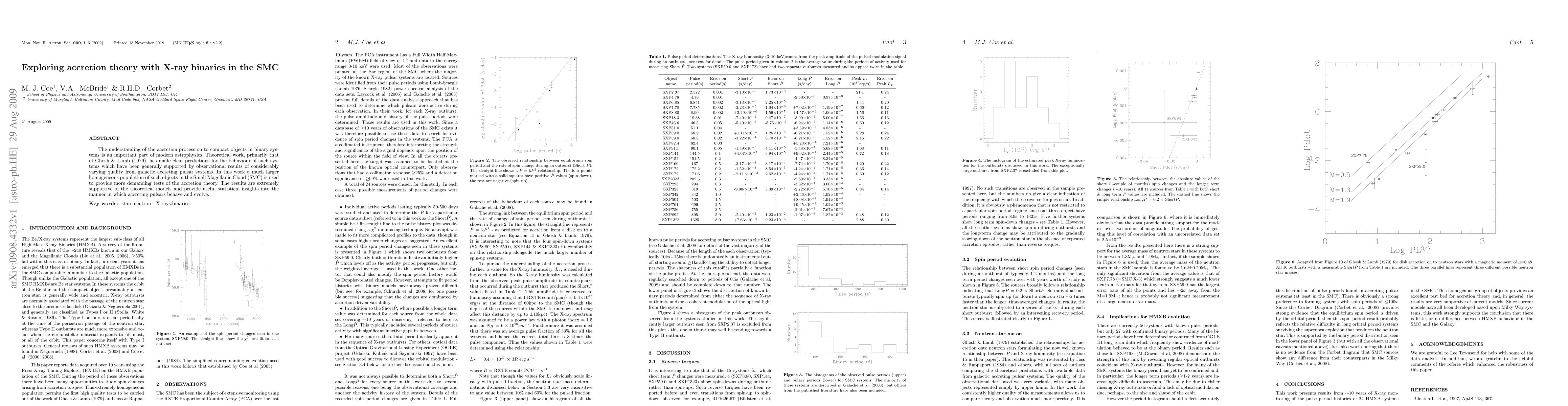 The understanding of the accretion process on to compact objects in binary systems is an important part of modern astrophysics. Theoretical work, primarily that of Ghosh & Lamb (1979), has made clear predictions for the behaviour of such systems which have been generally supported by observational results of considerably varying quality from galactic accreting pulsar systems. In this work a much larger homogeneous population of such objects in the Small Magellanic Cloud (SMC) is used to provide more demanding tests of the accretion theory. The results are extremely supportive of the theoretical models and provide useful statistical insights into the manner in which accreting pulsars behave and evolve.