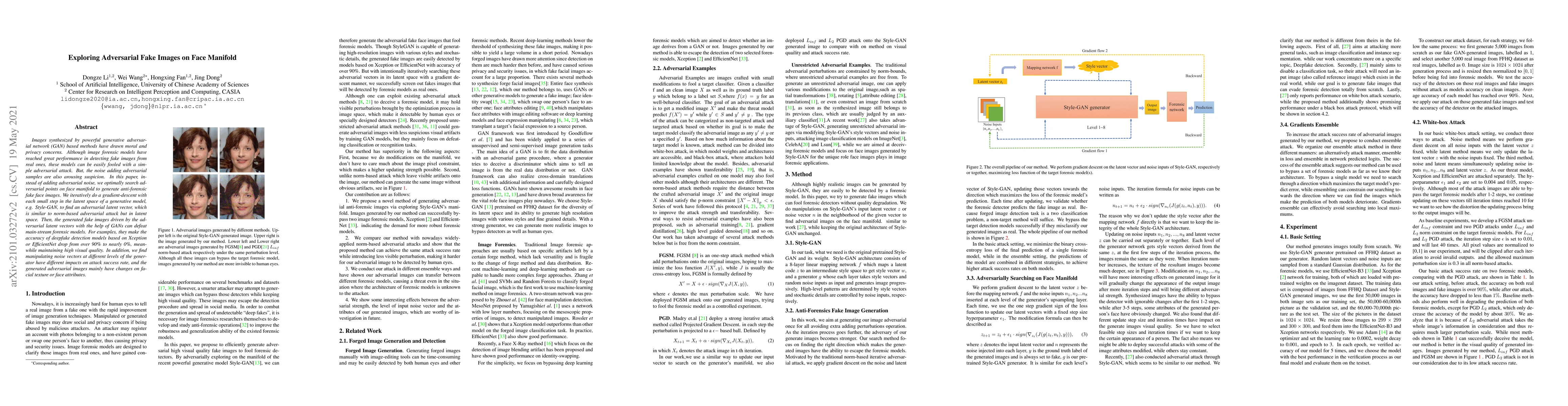 Researchers created a method to generate fake face images that can fool mainstream forensic models with high accuracy, while maintaining visual quality. This technique optimizes adversarial points on the face manifold to produce anti-forensic fake faces.