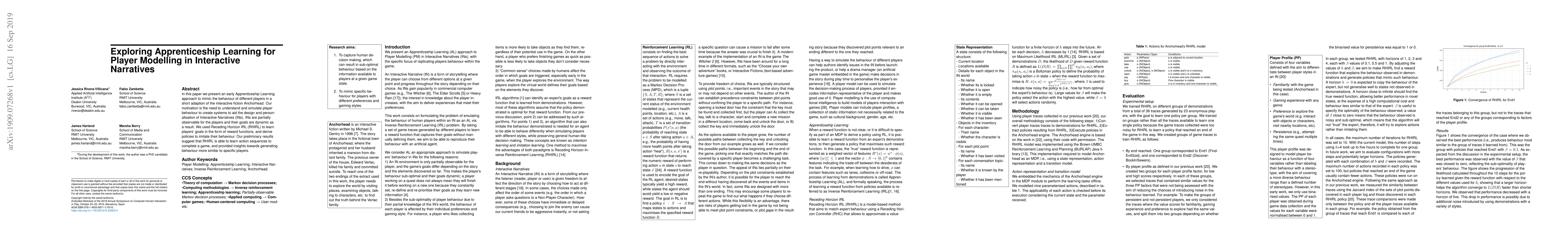 This paper explores an early Apprenticeship Learning approach using Receding Horizon Imitation Reinforcement Learning (RHIRL) to mimic player behaviour in interactive fiction, aiming to aid in the design and personalization of Interactive Narratives. Preliminary results indicate RHIRL can learn to imitate player goals and action sequences, offering insights into generating player-specific behaviour.