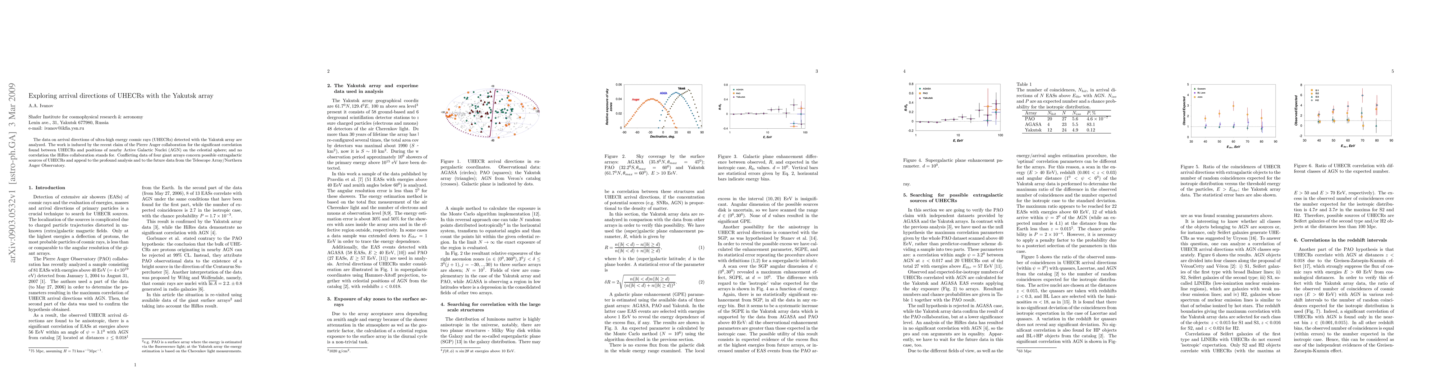 This paper analyzes the arrival directions of ultra-high energy cosmic rays (UHECRs) detected by the Yakutsk array, comparing findings with the conflicting claims from the Pierre Auger and HiRes collaborations regarding correlations with nearby Active Galactic Nuclei (AGN). The study aims to resolve discrepancies in the data concerning the extragalactic sources of UHECRs.