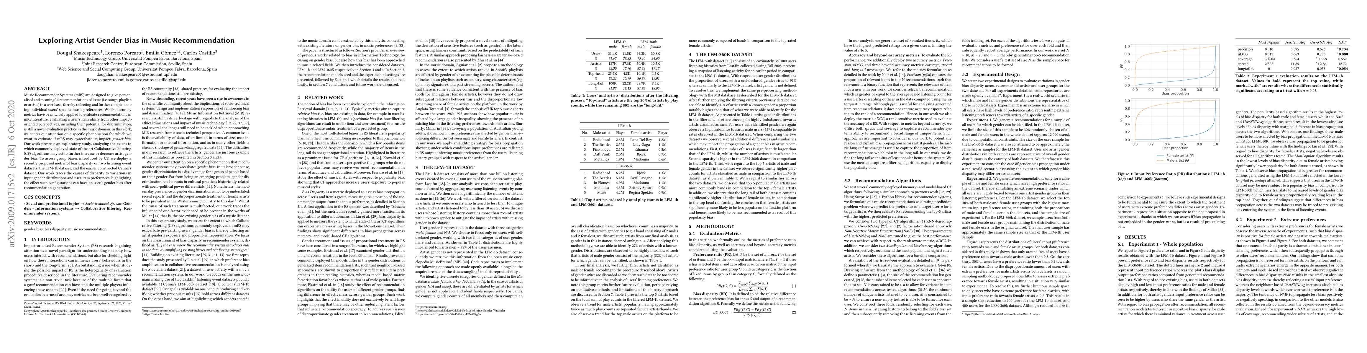 Music Recommender Systems (mRS) are designed to give personalised and meaningful recommendations of items (i.e. songs, playlists or artists) to a user base, thereby reflecting and further complementing individual users' specific music preferences. Whilst accuracy metrics have been widely applied to evaluate recommendations in mRS literature, evaluating a user's item utility from other impact-oriented perspectives, including their potential for discrimination, is still a novel evaluation practice in the music domain. In this work, we center our attention on a specific phenomenon for which we want to estimate if mRS may exacerbate its impact: gender bias. Our work presents an exploratory study, analyzing the extent to which commonly deployed state of the art Collaborative Filtering(CF) algorithms may act to further increase or decrease artist gender bias. To assess group biases introduced by CF, we deploy a recently proposed metric of bias disparity on two listening event datasets: the LFM-1b dataset, and the earlier constructed Celma's dataset. Our work traces the causes of disparity to variations in input gender distributions and user-item preferences, highlighting the effect such configurations can have on user's gender bias after recommendation generation.