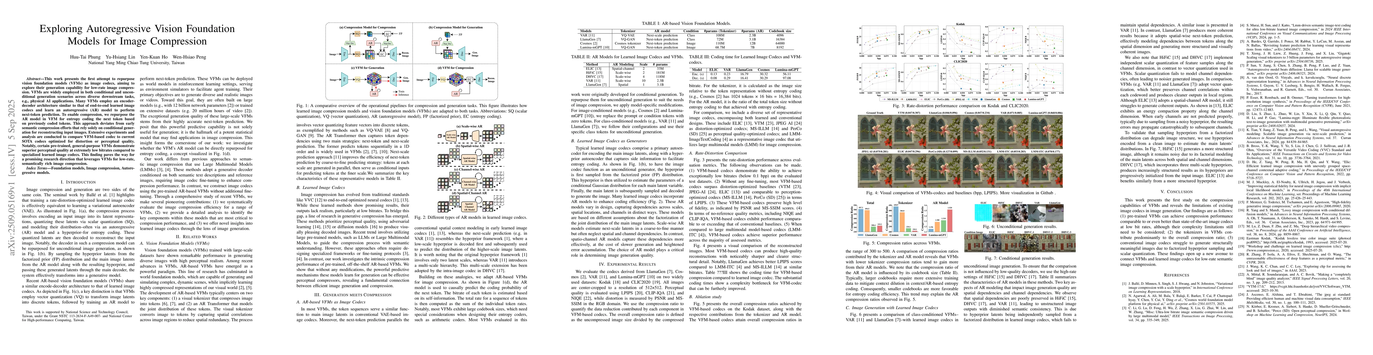 This work presents the first attempt to repurpose vision foundation models (VFMs) as image codecs, aiming to explore their generation capability for low-rate image compression. VFMs are widely employed in both conditional and unconditional generation scenarios across diverse downstream tasks, e.g., physical AI applications. Many VFMs employ an encoder-decoder architecture similar to that of end-to-end learned image codecs and learn an autoregressive (AR) model to perform next-token prediction. To enable compression, we repurpose the AR model in VFM for entropy coding the next token based on previously coded tokens. This approach deviates from early semantic compression efforts that rely solely on conditional generation for reconstructing input images. Extensive experiments and analysis are conducted to compare VFM-based codec to current SOTA codecs optimized for distortion or perceptual quality. Notably, certain pre-trained, general-purpose VFMs demonstrate superior perceptual quality at extremely low bitrates compared to specialized learned image codecs. This finding paves the way for a promising research direction that leverages VFMs for low-rate, semantically rich image compression.