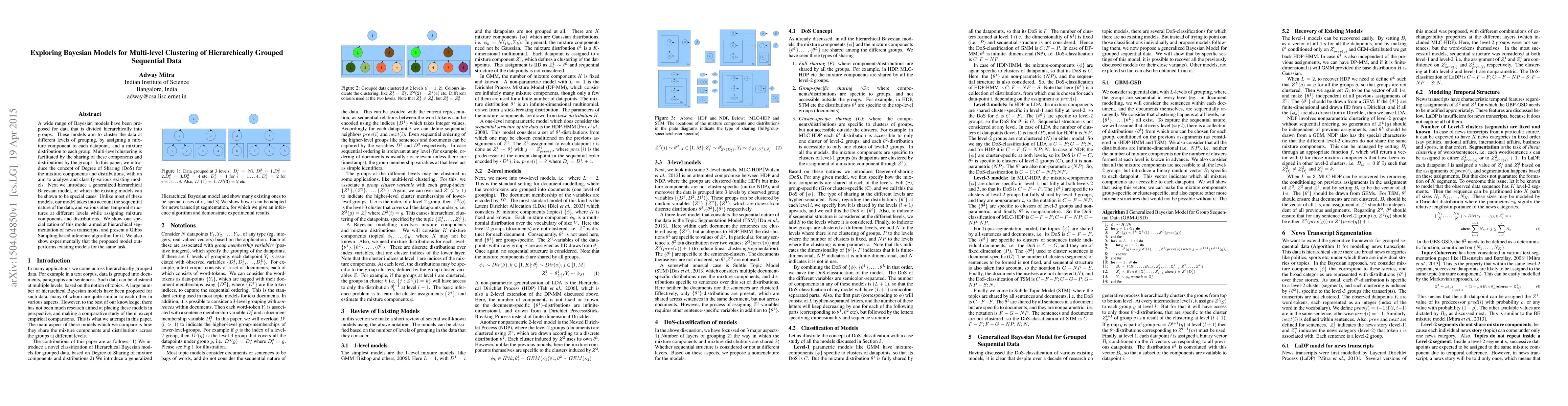 A wide range of Bayesian models have been proposed for data that is divided hierarchically into groups. These models aim to cluster the data at different levels of grouping, by assigning a mixture component to each datapoint, and a mixture distribution to each group. Multi-level clustering is facilitated by the sharing of these components and distributions by the groups. In this paper, we introduce the concept of Degree of Sharing (DoS) for the mixture components and distributions, with an aim to analyze and classify various existing models. Next we introduce a generalized hierarchical Bayesian model, of which the existing models can be shown to be special cases. Unlike most of these models, our model takes into account the sequential nature of the data, and various other temporal structures at different levels while assigning mixture components and distributions. We show one specialization of this model aimed at hierarchical segmentation of news transcripts, and present a Gibbs Sampling based inference algorithm for it. We also show experimentally that the proposed model outperforms existing models for the same task.