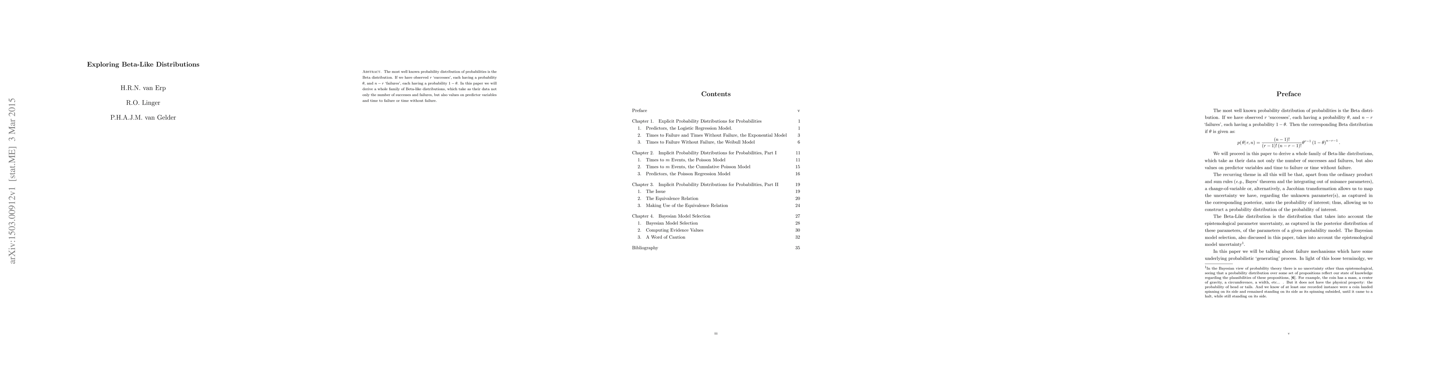 The most well known probability distribution of probabilities is the Beta distribution. If we have observed $r$ `successes', each having a probability $\theta$, and $n-r$ `failures', each having a probability $1-\theta$. In this paper we will derive a whole family of Beta-like distributions, which take as their data not only the number of successes and failures, but also values on predictor variables and time to failure or time without failure.