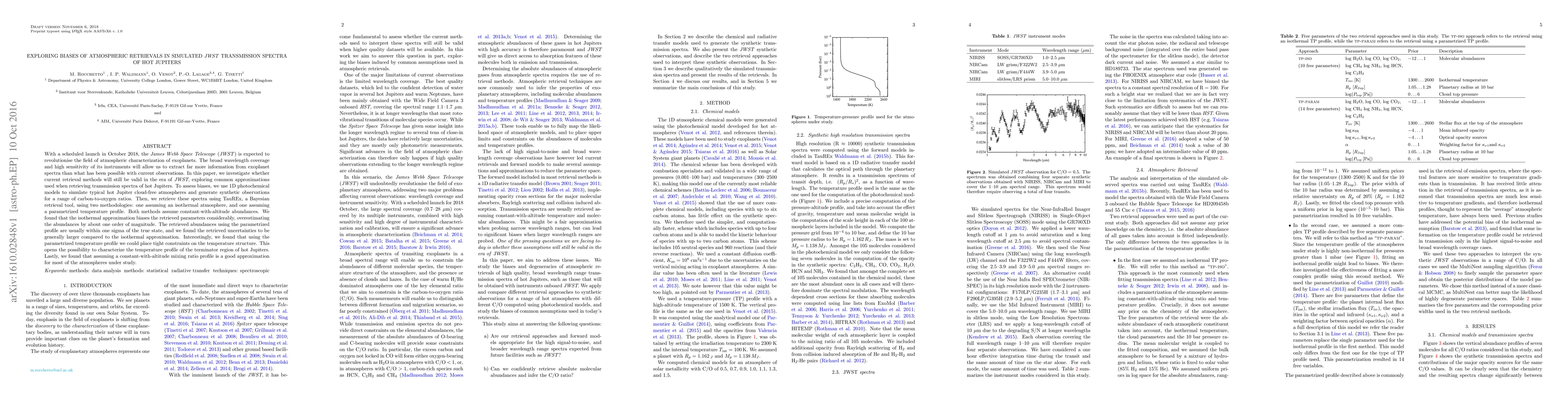 With a scheduled launch in October 2018, the James Webb Space Telescope (JWST) is expected to revolutionise the field of atmospheric characterization of exoplanets. The broad wavelength coverage and high sensitivity of its instruments will allow us to extract far more information from exoplanet spectra than what has been possible with current observations. In this paper, we investigate whether current retrieval methods will still be valid in the era of JWST, exploring common approximations used when retrieving transmission spectra of hot Jupiters. To assess biases, we use 1D photochemical models to simulate typical hot Jupiter cloud-free atmospheres and generate synthetic observations for a range of carbon-to-oxygen ratios. Then, we retrieve these spectra using TauREx, a Bayesian retrieval tool, using two methodologies: one assuming an isothermal atmosphere, and one assuming a parametrized temperature profile. Both methods assume constant-with-altitude abundances. We found that the isothermal approximation biases the retrieved parameters considerably, overestimating the abundances by about one order of magnitude. The retrieved abundances using the parametrized profile are usually within one sigma of the true state, and we found the retrieved uncertainties to be generally larger compared to the isothermal approximation. Interestingly, we found that using the parametrized temperature profile we could place tight constraints on the temperature structure. This opens the possibility to characterize the temperature profile of the terminator region of hot Jupiters. Lastly, we found that assuming a constant-with-altitude mixing ratio profile is a good approximation for most of the atmospheres under study.