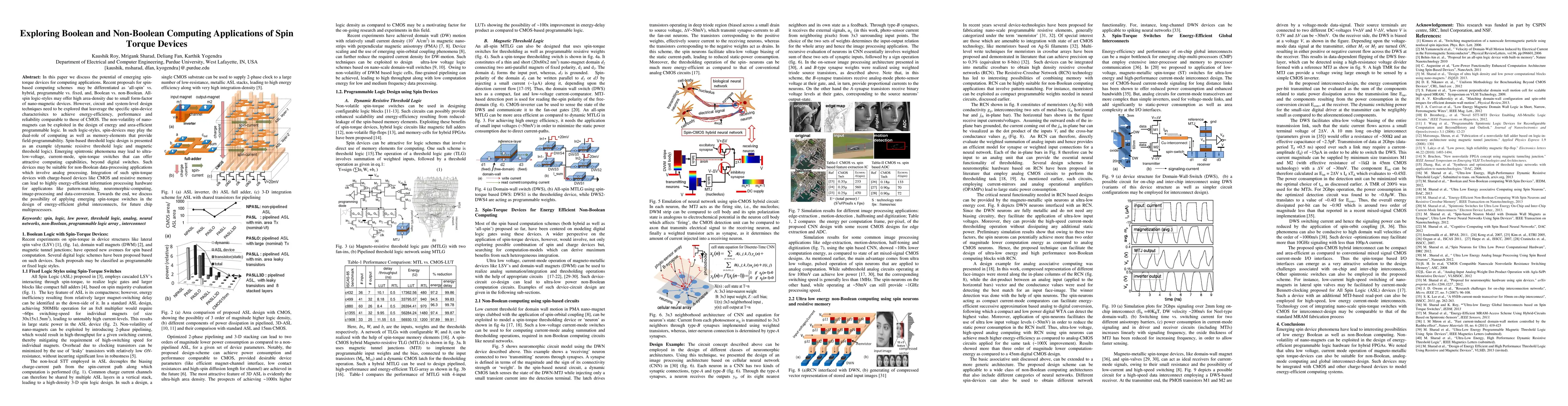 This paper explores the potential of spintorque devices for computing applications, differentiating between all-spin, hybrid, programmable, and fixed logic styles. It highlights the potential for high-density, energy-efficient, non-Boolean data-processing using spin-based threshold logic and ultralow-voltage spin-torque switches, and suggests integration with CMOS for advanced applications like pattern-matching and neuromorphic computing.