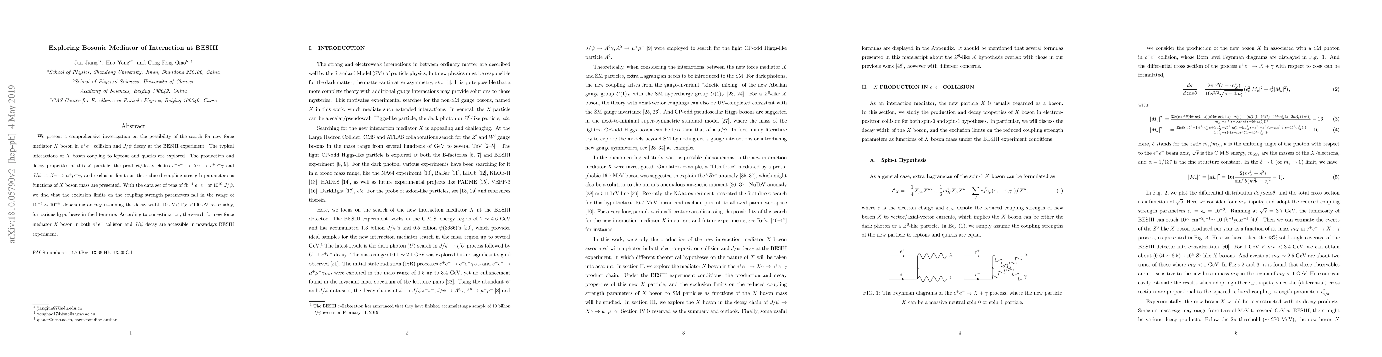 Researchers investigated the possibility of a new force mediator X boson at BESIII experiment, finding exclusion limits on coupling strength parameters with tens of fb$^{-1}$ data sets.