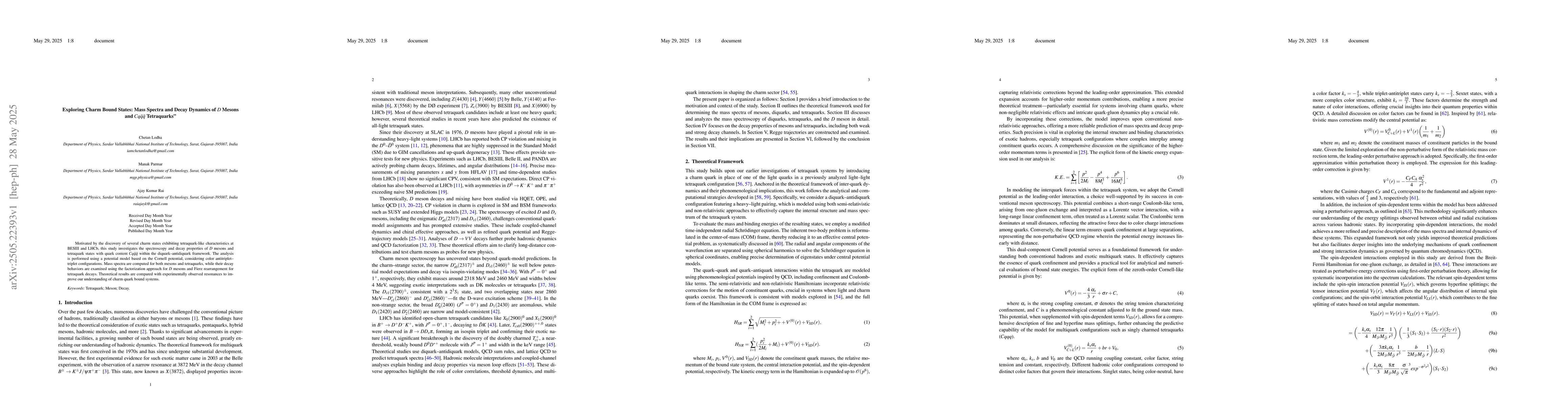 The paper presents a detailed analysis of D meson mass spectra and $Cq\bar{q}\bar{q}$ tetraquark decay dynamics within a diquark-antidiquark framework, utilizing a Cornell potential-based model.