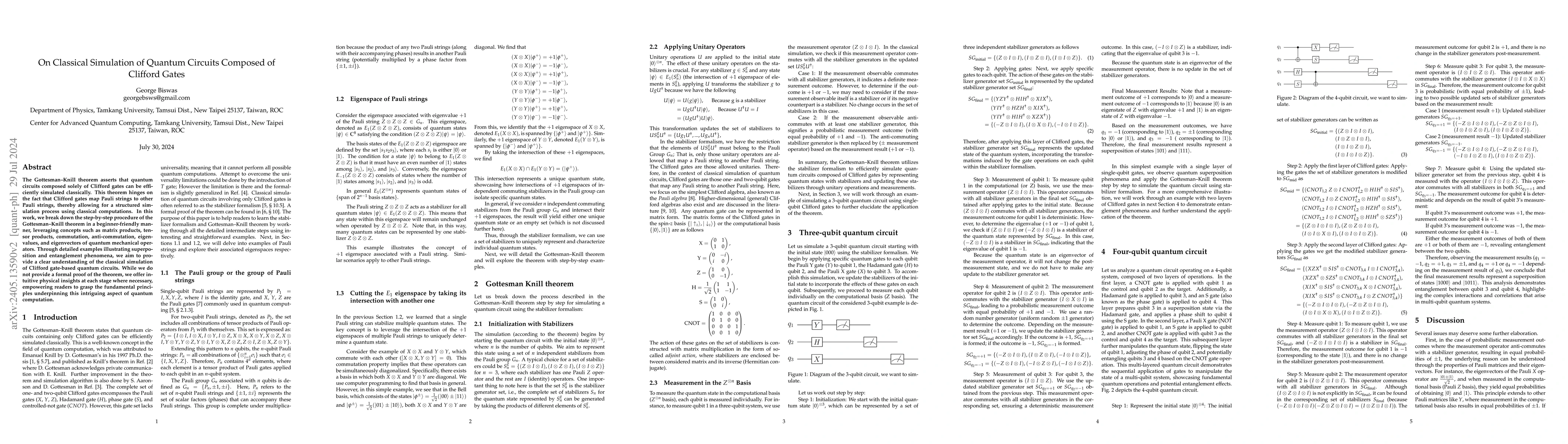 This paper explains the Gottesman-Knill theorem on classical simulation of quantum circuits made up of Clifford gates, breaking down complex concepts like matrix and tensor products, commutation, and eigenvalues with simple examples. It aims to provide intuitive insights into the classical simulation process without a formal proof.