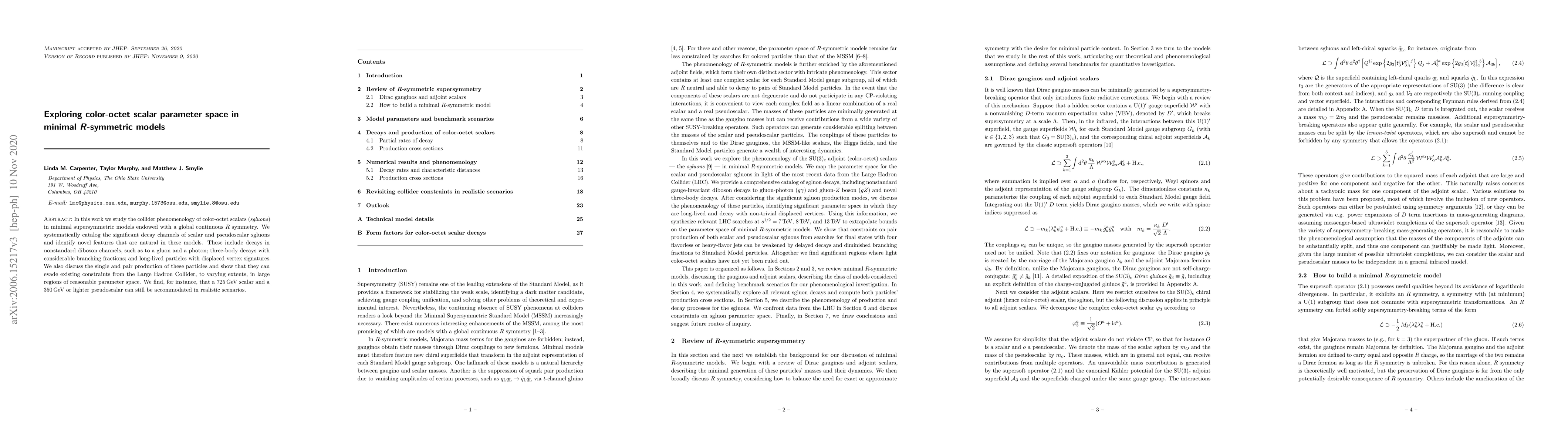 This research explores the collider behavior of color-octet scalars (sgluons) in minimal supersymmetric models with a global continuous R symmetry. It identifies unique decay patterns, like diboson channels and three-body decays, and suggests these particles could evade current LHC constraints, potentially allowing for a 725 GeV scalar and a 350 GeV or lighter pseudoscalar in feasible scenarios.