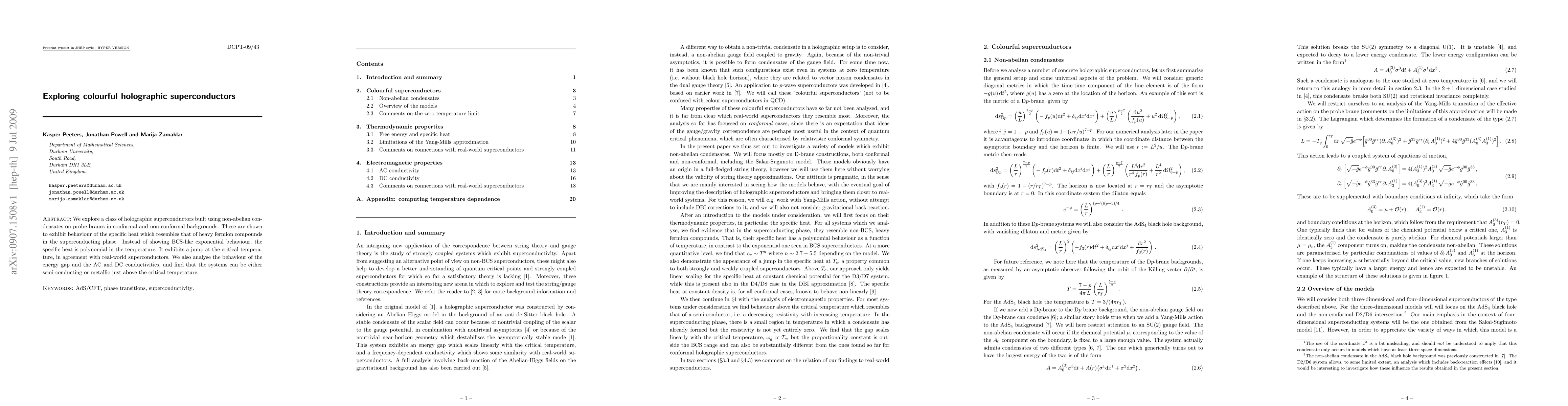 We explore a class of holographic superconductors built using non-abelian condensates on probe branes in conformal and non-conformal backgrounds. These are shown to exhibit behaviour of the specific heat which resembles that of heavy fermion compounds in the superconducting phase. Instead of showing BCS-like exponential behaviour, the specific heat is polynomial in the temperature. It exhibits a jump at the critical temperature, in agreement with real-world superconductors. We also analyse the behaviour of the energy gap and the AC and DC conductivities, and find that the systems can be either semi-conducting or metallic just above the critical temperature.