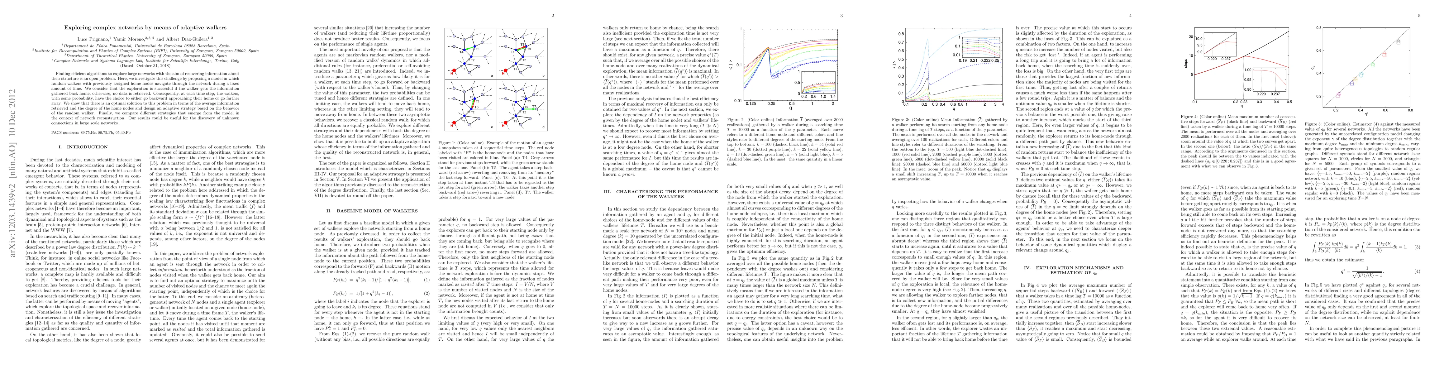 Researchers propose an adaptive model to explore complex networks using random walkers with assigned home nodes, aiming to retrieve information about the network structure. They find that there is an optimal solution in terms of average information retrieved and degree of home nodes.