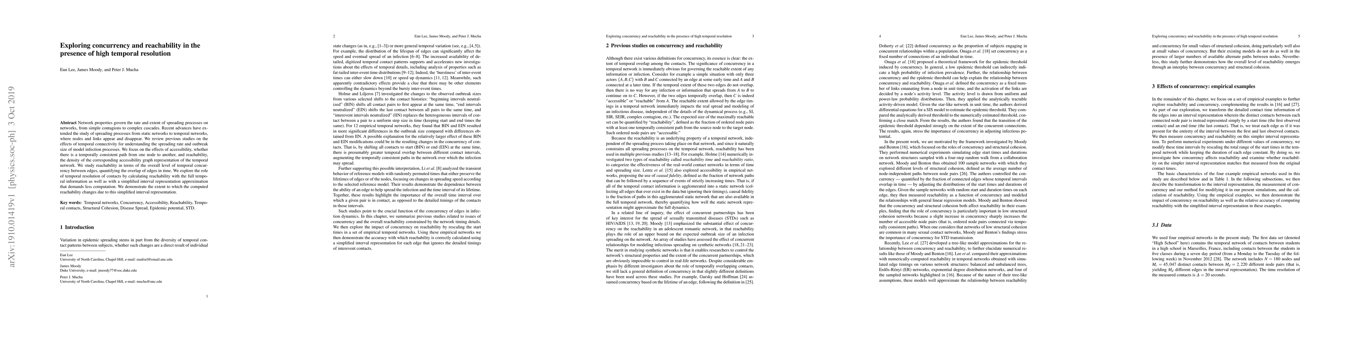 This paper reviews the impact of temporal connectivity on the spreading rate and outbreak size in temporal networks, focusing on "accessibility" and "reachability." It examines how temporal concurrency affects reachability and compares reachability calculated with full temporal information versus a simplified interval representation.