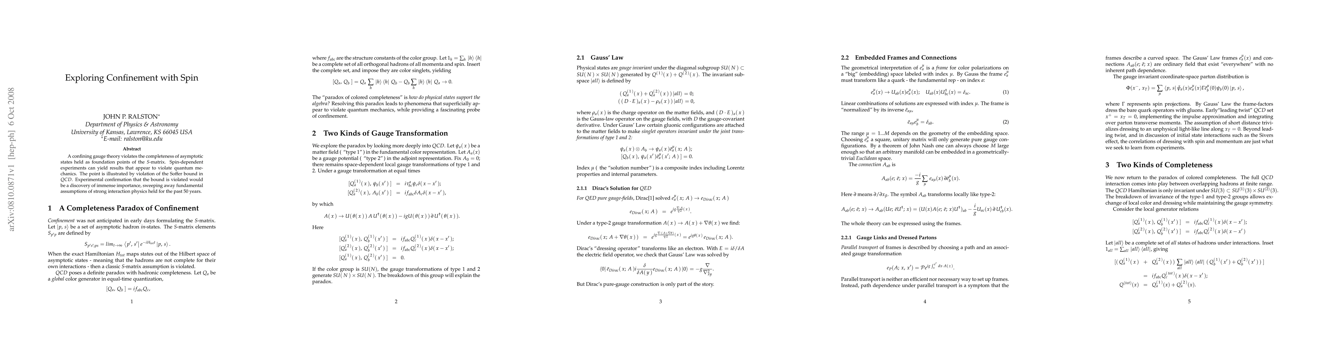 A confining gauge theory violates the completeness of asymptotic states held as foundation points of the $S$-matrix. Spin-dependent experiments can yield results that appear to violate quantum mechanics. The point is illustrated by violation of the Soffer bound in $QCD$. Experimental confirmation that the bound is violated would be a discovery of immense importance, sweeping away fundamental assumptions of strong interaction physics held for the past 50 years.