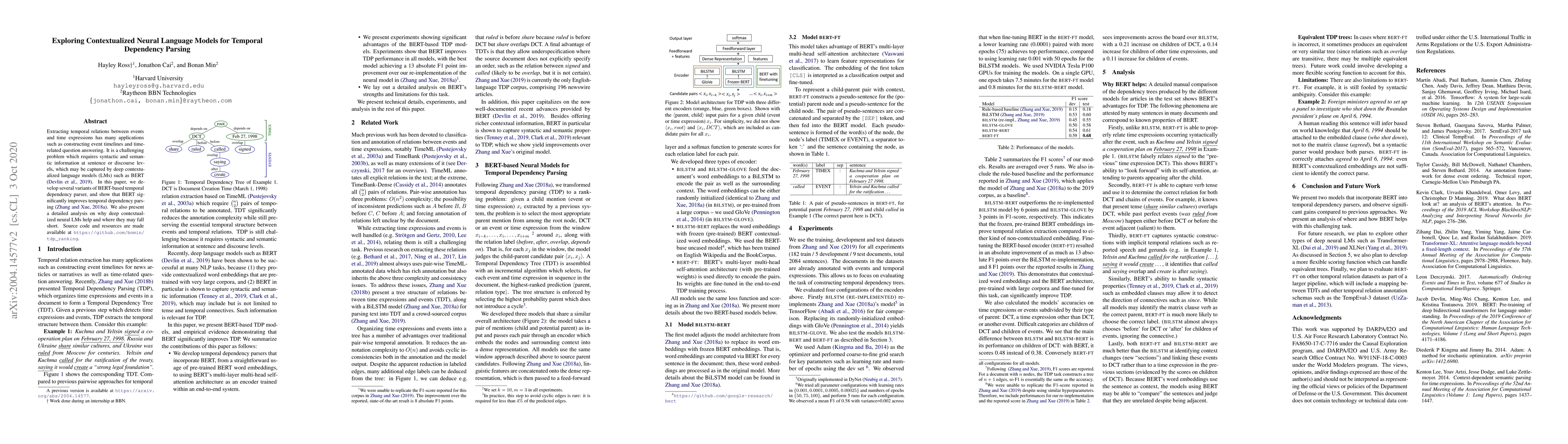 This paper develops BERT-based models for temporal dependency parsing, demonstrating significant improvements over previous methods. It also analyzes the strengths and limitations of deep contextualized language models in this context, with source code available for reproducibility.