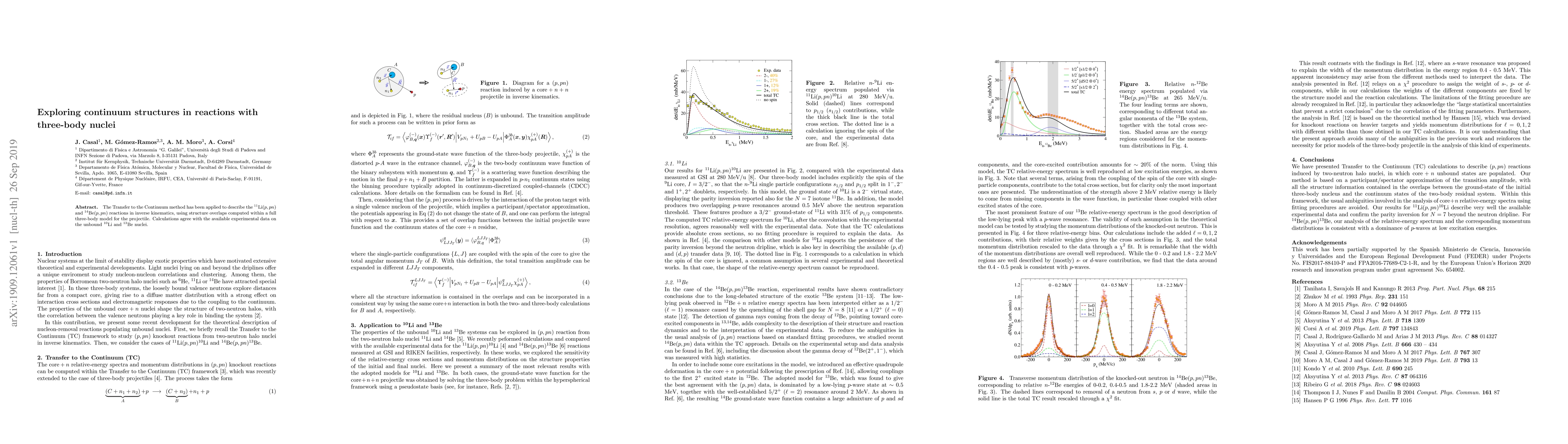 The Transfer to the Continuum method has been applied to describe the $^{11}\text{Li}(p,pn)$ and $^{14}\text{Be}(p,pn)$ reactions in inverse kinematics, using structure overlaps computed within a full three-body model for the projectile. Calculations agree with the available experimental data on the unbound $^{10}$Li and $^{13}$Be nuclei.